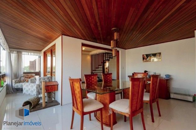 Linda cobertura de 4 dormitórios, 1 suíte, 4 banheiros para locação com 4 vagas de garagem fechadas e escrituradas 1terraço aberto com deck, piscina e churrasqueira, semi mobiliado no bairro Jardim Lindóia em Porto Alegre/RS. Piso inferior: Ampla sala de 3 ambientes com sacada fechada, 3 dormitórios, 1 suíte , lavabo, 1 banheiro social, copa, cozinha americana ampla ,área de serviço, dependência de empregada, lavanderia, banheiro auxiliar. Escada em madeira com acesso para a cobertura. Piso superior: Sala social ampla para 3 ambientes com lareira, 1 banheiro social, cozinha , fogão e churrasqueira + 1 terraço aberto com deck e piscina. 4 vagas de garagem cobertas e escrituradas. Condomínio com gás central, salão de festa com churrasqueira, cozinha, banheiro social , elevador. Cobertura com linda vista para o bairro Lindóia. Agende sua visita!!