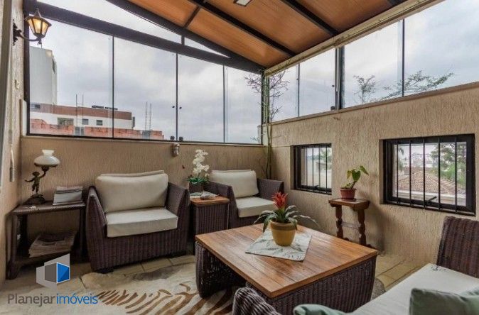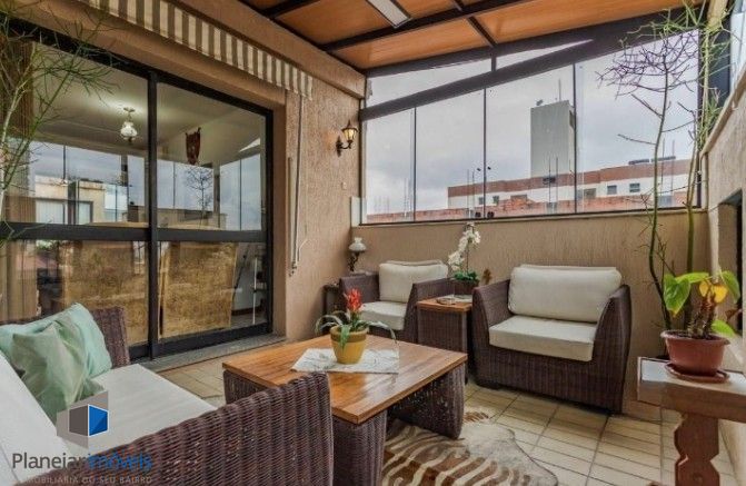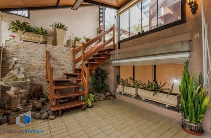 PLANEJAR IMÓVEIS ALUGA: Cobertura Triplex, com 3 dormitórios no primeiro andar, sendo 1 suíte, sala dois ambientes, sacada, cozinha, área de serviço, dependência de empregada e 3 banheiros. No segundo piso escritório, 1 banheiro e 2 salas, sendo uma de tv, e outra copa, espaço com churrasqueira e outras salas para dois ambientes. No terceiro piso, solarium, com cadeiras de jardim, muitas folhagens e bela vista.