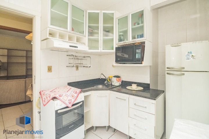 O imóvel conta com living com sacada, proporcionando um ambiente arejado e com excelente iluminação natural. A cozinha é funcional, equipada com armários planejados e área de serviço independente. O banheiro social é completo, com box e armários, garantindo conforto e praticidade no dia a dia. Por estar em andar alto, o apartamento oferece maior ventilação e isolamento do ruído urbano.