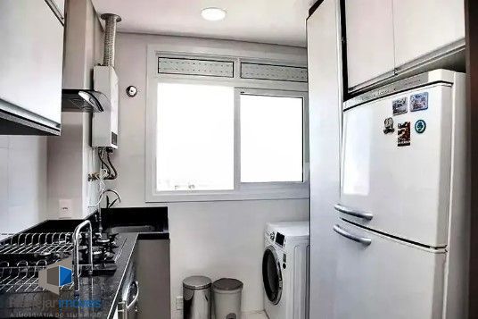 Com 2 quartos, sendo 1 suíte, e 2 banheiros, este imóvel ainda conta com área de serviço, banheiro social, cozinha equipada com armários embutidos e eletrodomésticos como geladeira e ar condicionado, trazendo praticidade e funcionalidade para o seu dia a dia.