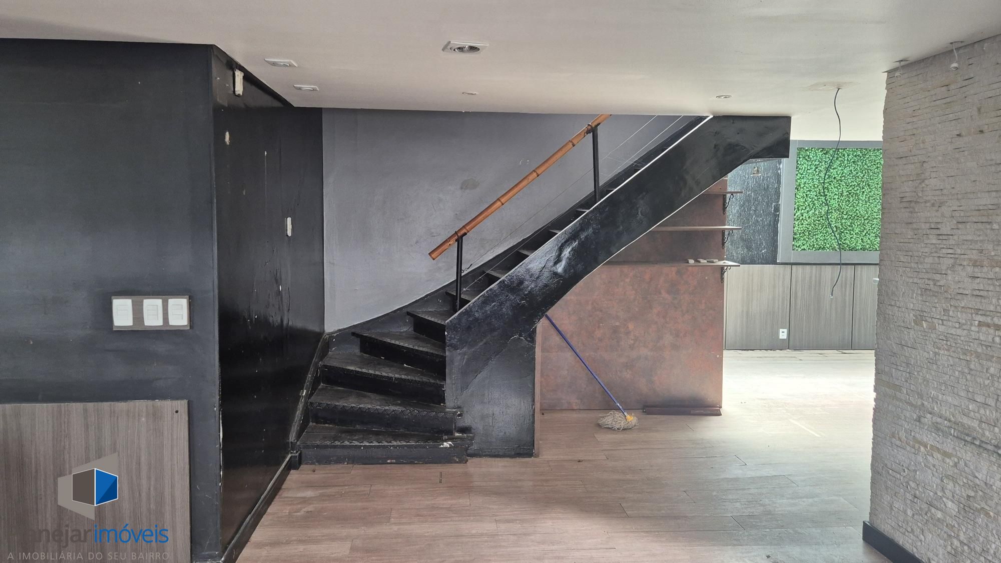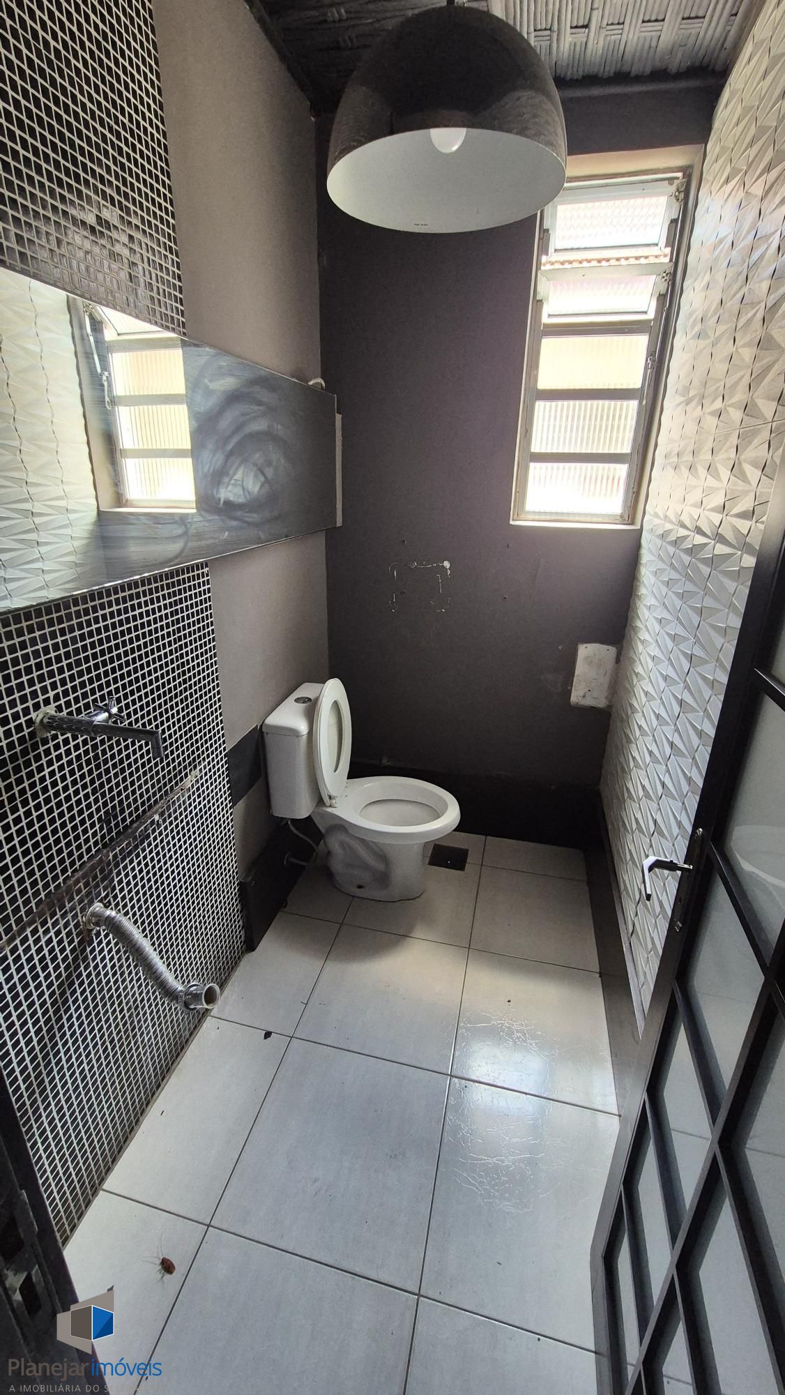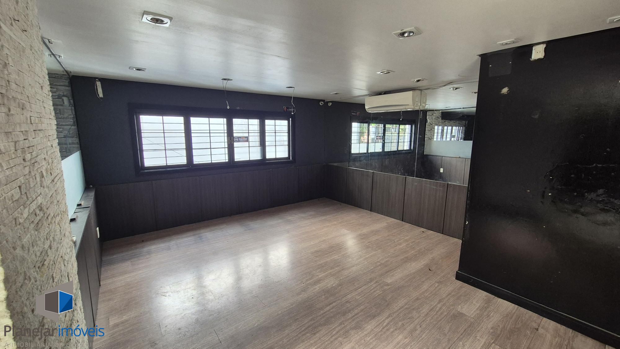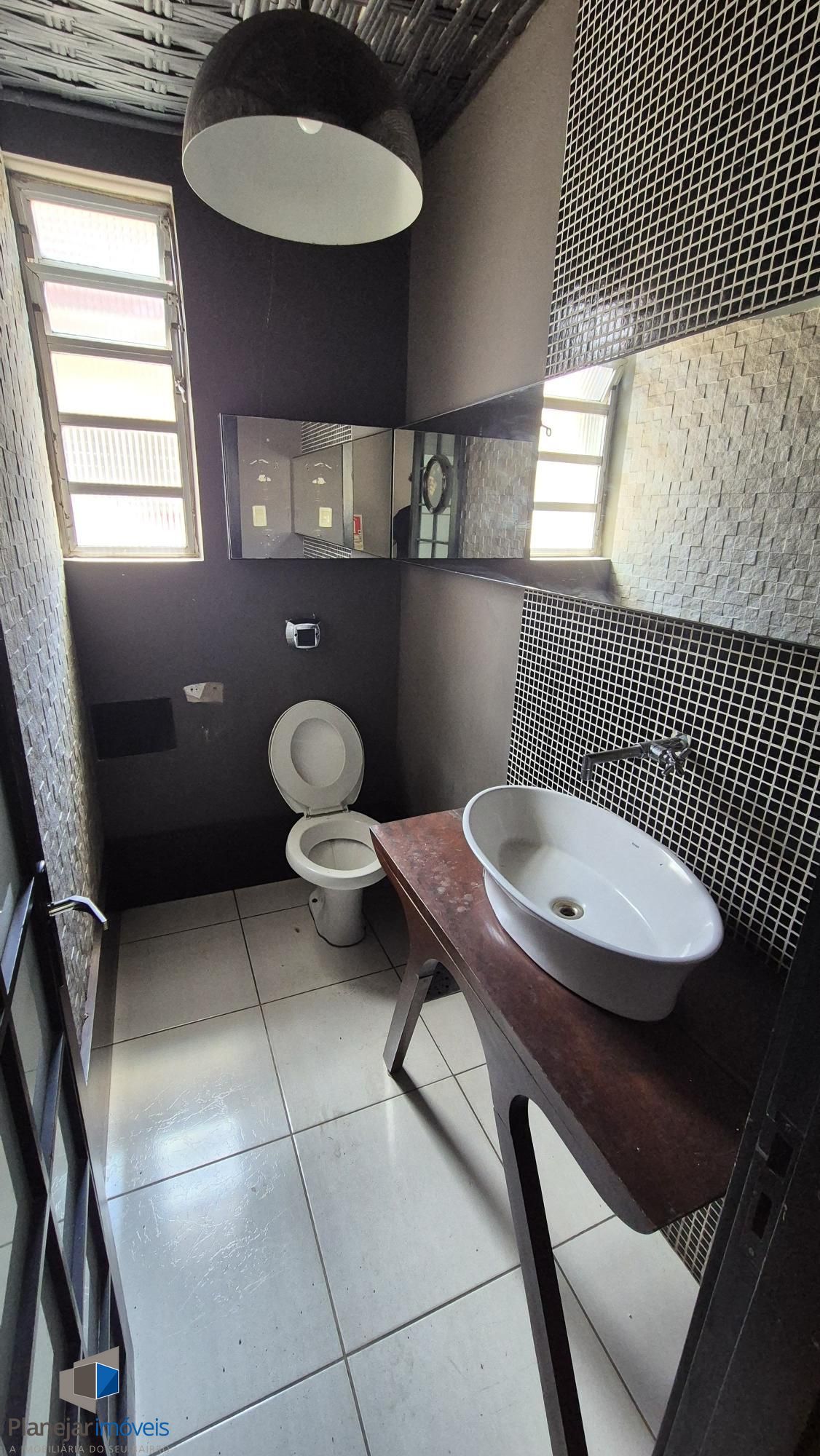 No andar de cima, 02 banheiros e 03 salões.