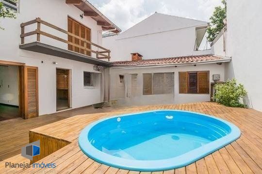 PLANEJAR IMÓVEIS ALUGA: Casa tipo sobrado com 3 quartos, sendo 1 suíte máster com closet e banheira de hidromassagem, no bairro Santana em Porto Alegre, Possui 224m² privativos, Living para 2 ambientes distintos, com lareira, sala de estar, lavabo, cozinha ampla, pátio dos fundos com piscina e todo o deck foi refeito a poucos dias, dependência de empregada completa, garagem para 4 carros, sendo 3 fechadas, em frente a casa jardim com linda palmeira. O imóvel foi totalmente reformado com muito bom gosto, Aceita financiamento. Vale a pena conhecer!!
