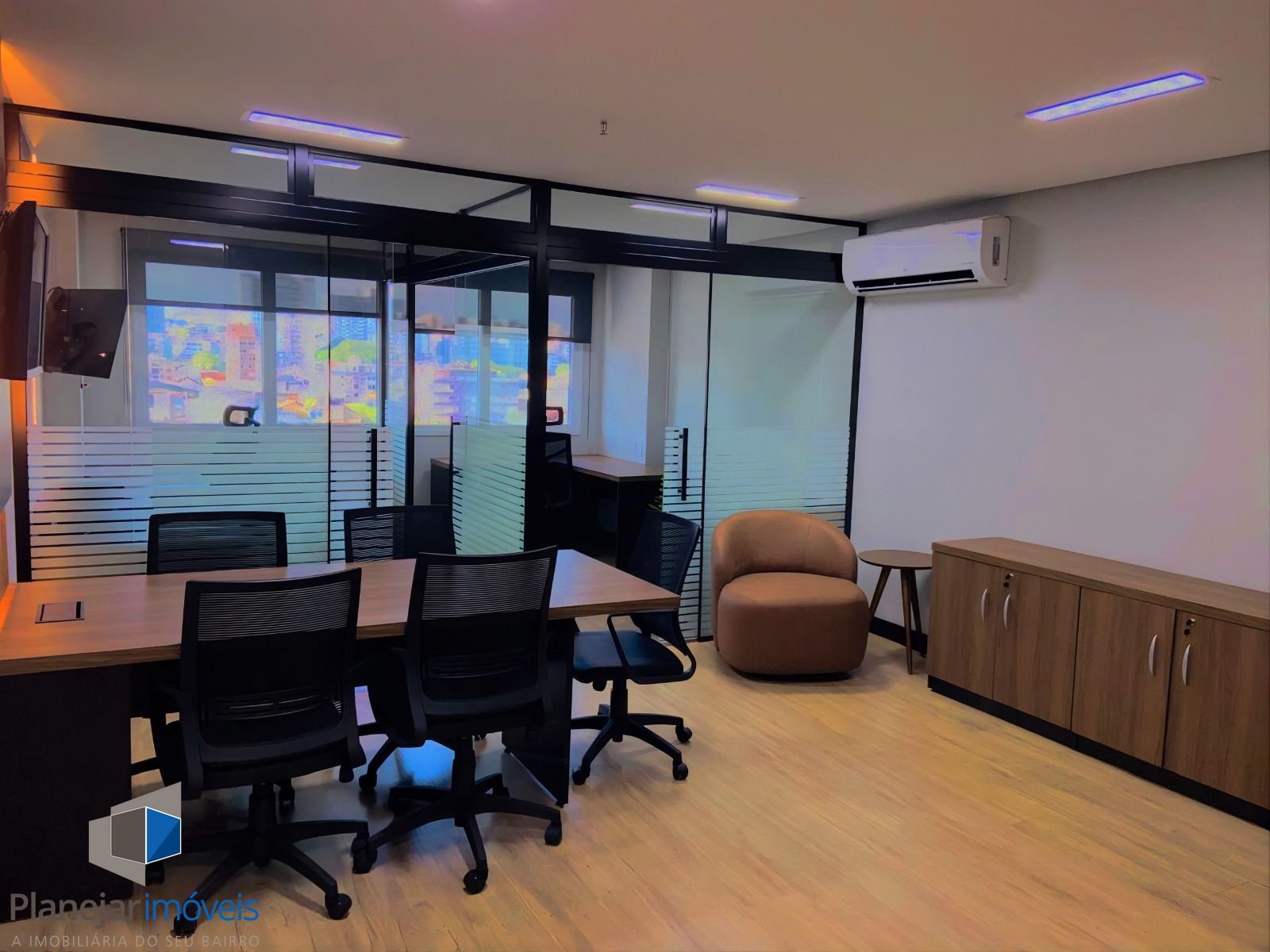 Com um ambiente moderno e aconchegante, esta sala comercial já está mobiliada, pronta para ser utilizada. Conta com 1 sala e 1 banheiro, proporcionando um espaço funcional e confortável para suas atividades comerciais.