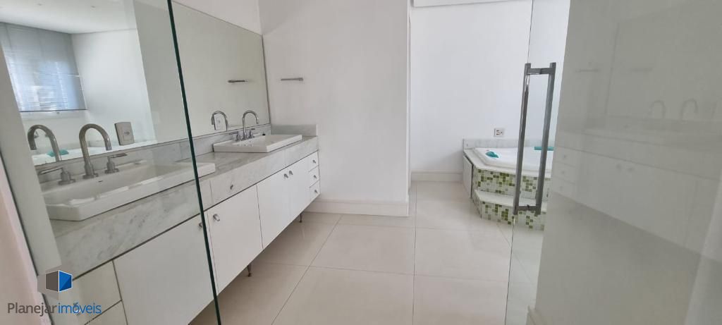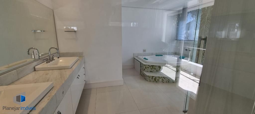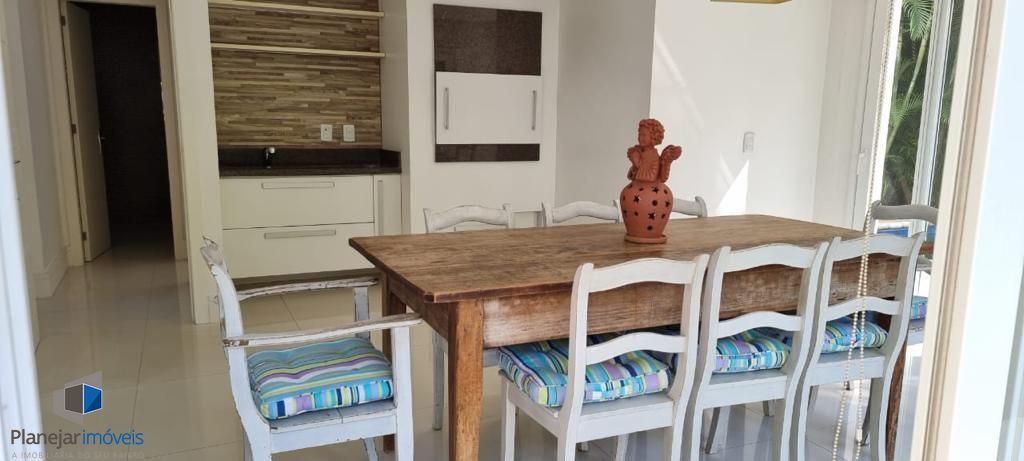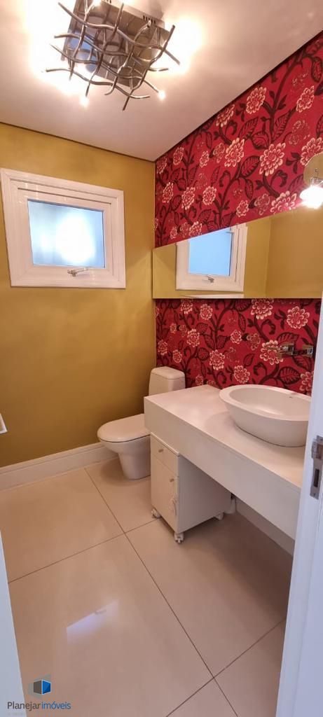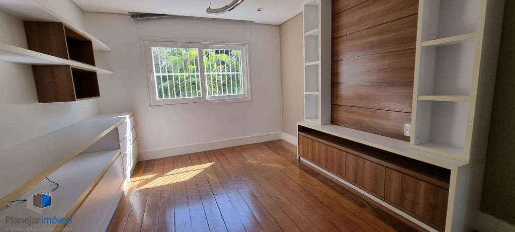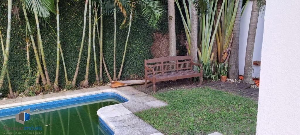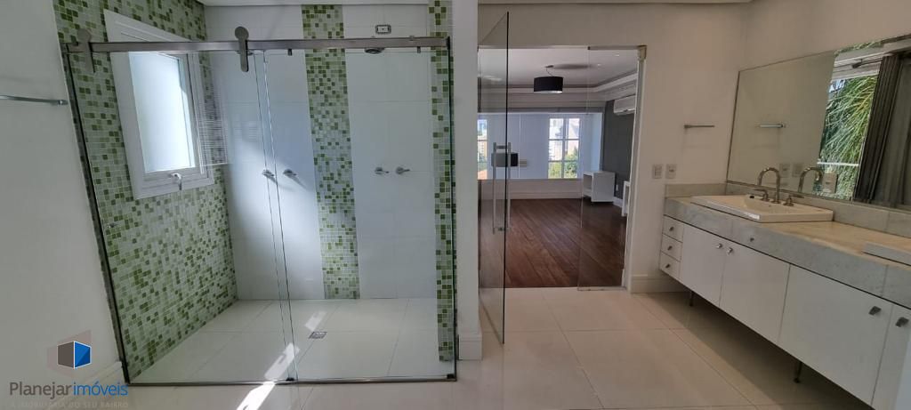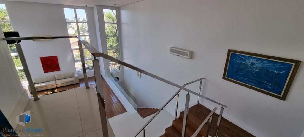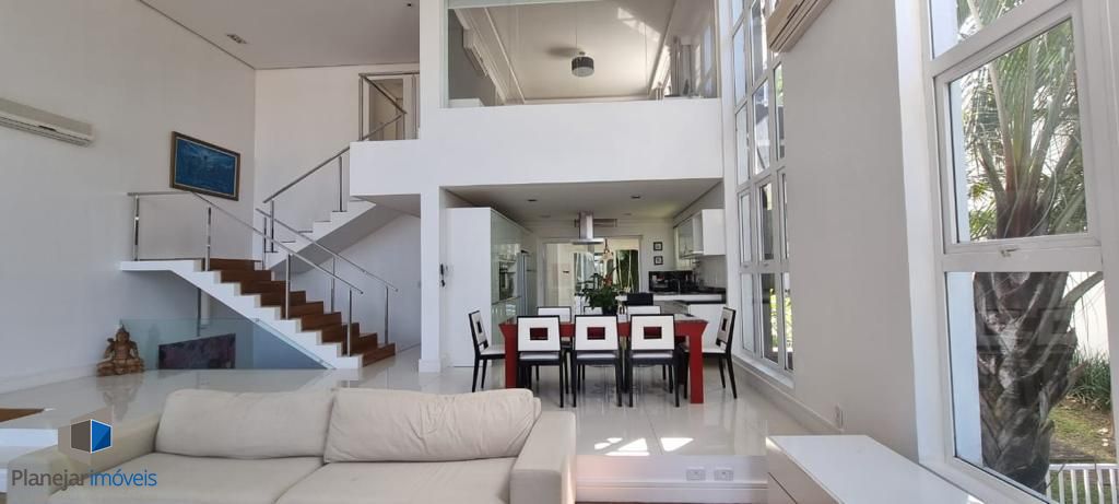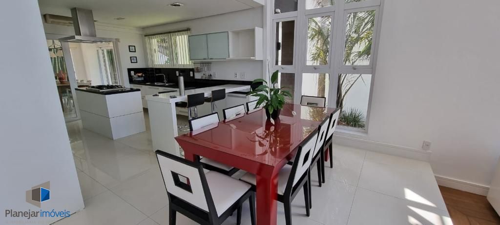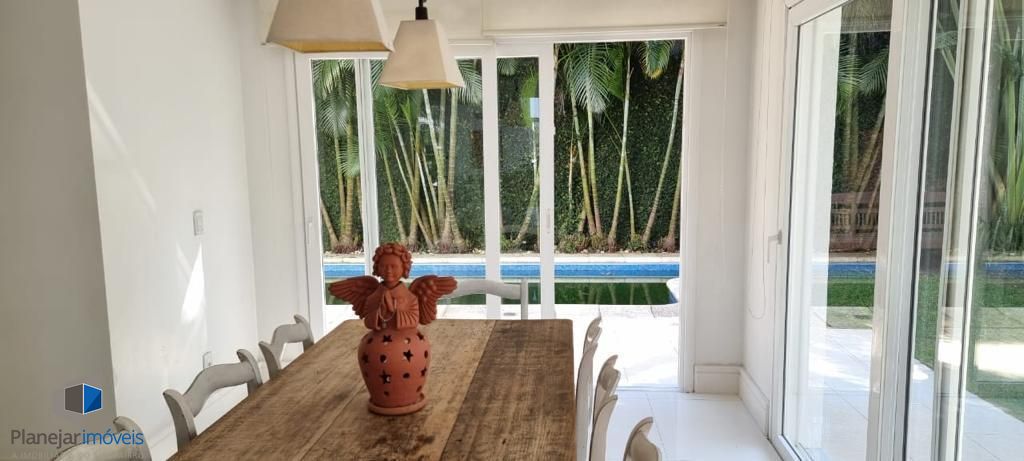 Residência de alto padrão, semi mobiliada, composta por 3 amplas suítes, sendo a principal dotada de closet. Disposição de living com três ambientes distintos, lareira, ampla cozinha em modelo americano e elegante espaço com churrasqueira envidraçada integrada ao jardim e à piscina. Sistema de ar-condicionado tipo split instalado em todos os cômodos, inclusive na garagem. Garagem com capacidade para 4 veículos. Propriedade ainda conta com 2 dormitórios destinados a funcionários.