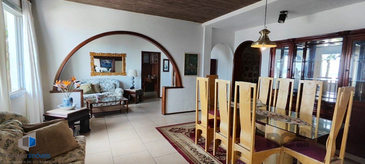 Casa á venda no bairro Sétimo Céu, zona sul de Porto Alegre com terreno de 800m². Área privativa de 347m². Possui 3 amplas suítes, uma com close e banheira, banheiros amplos, carpetes, vista para o rio Guaíba, Living para 3 ambientes, lareira, uma ótima sacada, com belíssima vista e Churrasqueira. Lavabo, Sala de jantar ampla com piso frio, Sala de estar ampla com piso frio, Copa, cozinha ampla com armários e cristaleira, área de serviços com churrasqueira, adega, salão de festas com bar e churrasqueira com belíssima vista, escritório sobre o salão de festas com ampla sacada e espetacular vista para o Rio Guaíba, piscina de concreto, jardins frente e fundos iluminação em todo o pátio com postes de ferro com globos, pomar com arvores frutíferas, canil, garagem para três carros.