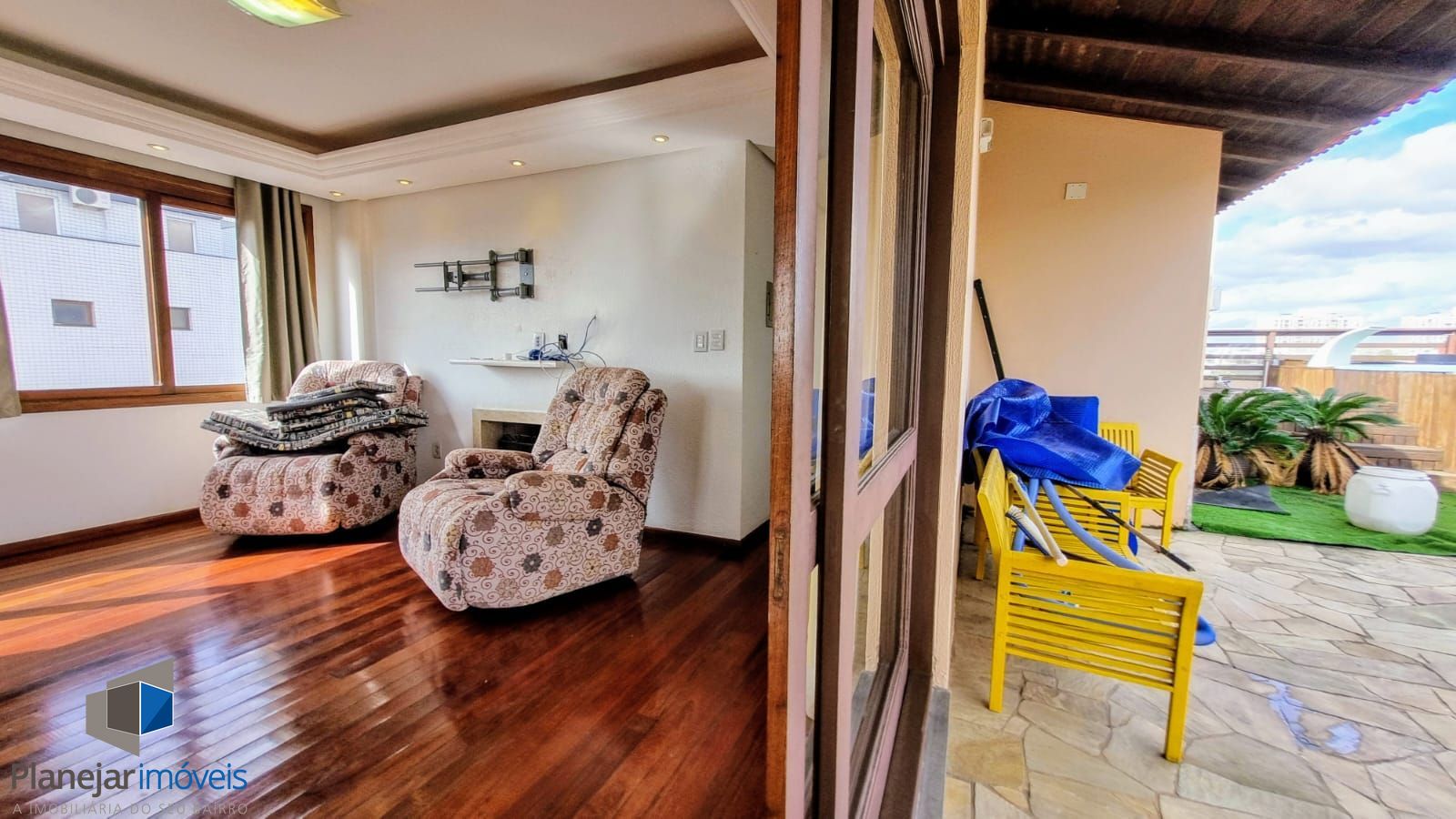 Linda cobertura de 4 dormitórios, 1 suíte , 4 banheiros para venda ,4 vagas de garagens cobertas e escrituradas + 1 terraço aberto com deck , piscina e churrasqueira, semi mobiliado no bairro Jardim Lindóia em Porto Alegre/RS. Piso inferior: Sala ampla para 3 ambientes, sala de estar e sala de jantar, com 1 ampla sacada fechada, lavabo, 3 dormitórios, 1 suíte, 1 banheiro social, copa, cozinha , área de serviço, dependência de empregada ,lavanderia, banheiro auxiliar. Escada em madeira com acesso para a cobertura. Piso superior: 1 ampla sala social para 3 ambientes ,lareira, cozinha com fogão , churrasqueira,1 banheiro social + 1 terraço aberto com deck , piscina. 4 vagas de garagens cobertas e escrituradas. Condomínio com gás central, salão de festas, churrasqueira, cozinha e banheiro auxiliar, elevador. Cobertura com linda vista para o bairro Jardim Lindóia. Agende sua visita!!