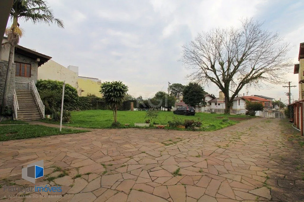 Amplo terreno em região alta do Bairro, frente com 27,50m e extenção de frente a fundos de 55m, possui casa com 840m² construida em cima, sendo 7 dormitórios, onde 3 são suítes, amplo salão com lareira e demais dependências, ideal para construção. Analisa parte do pagamento em permuta. Agende sua visita!