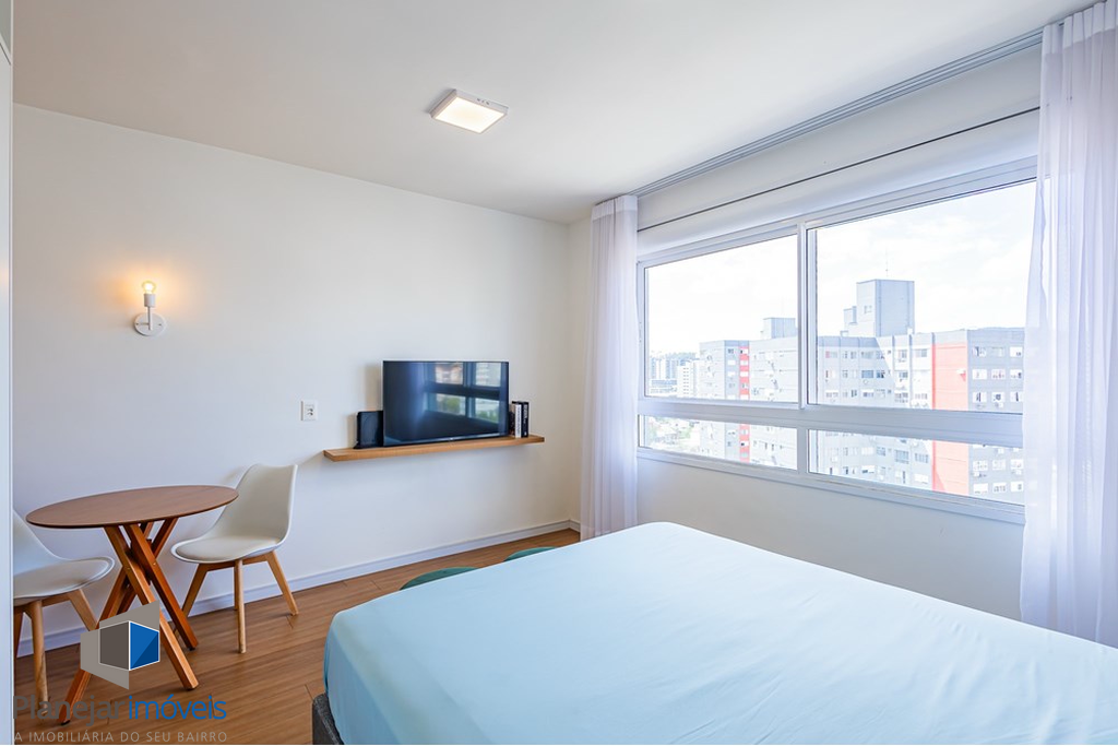 Studio à venda no bairro Partenon em Porto Alegre localizado na Avenida Cubanos com 28m2 de área privativa em edifício entregue em 2022. O imóvel possui design contemporâneo e distribuição inteligente totalmente mobiliado em andar alto com vista aberta posição solar leste e excelente iluminação natural. Conta com cozinha equipada com armários modernos geladeira microondas e cooktop por indução sala dormitório com armário cama mesa com cadeiras bancada e televisão além de banheiro com chuveiro a gás. O condomínio oferece estrutura completa com espaço fitness espaço gourmet dois salões de festas piscina coletiva bicicletário espaço pet lavanderia comunitária easy market rooftop com vista panorâmica acessibilidade portaria e segurança 24 horas. A localização é estratégica próxima à PUC RS e ao seu complexo hospitalar além de escolas lojas farmácias restaurantes e transporte público tornando-se também uma ótima oportunidade para investimento em aluguel ou Airbnb. Um imóvel moderno prático e pronto para morar que alia conveniência e qualidade de vida em uma região valorizada. Preço e disponibilidade do imóvel sujeitos a alteração sem aviso prévio.