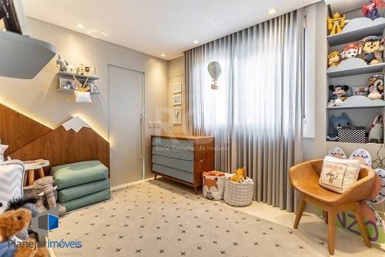 O pavimento inferior conta com 4 suítes, lavabo, cozinha completa com copa, ampla área de serviço com dependência e entrada independente, living com jantar, estar com lareira e ampla sacada com linda vista 360°.
