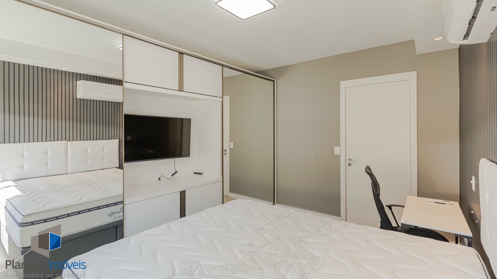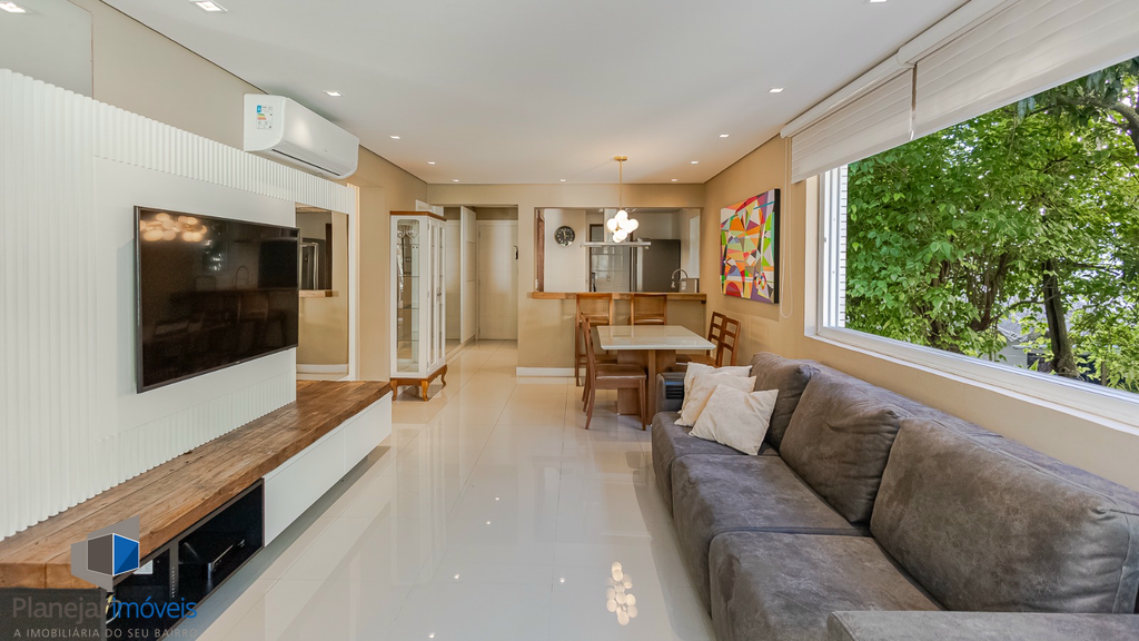 Apartamento semi-mobiliado, com área externa grande e agradável para aproveitar o sol e receber visitas.
