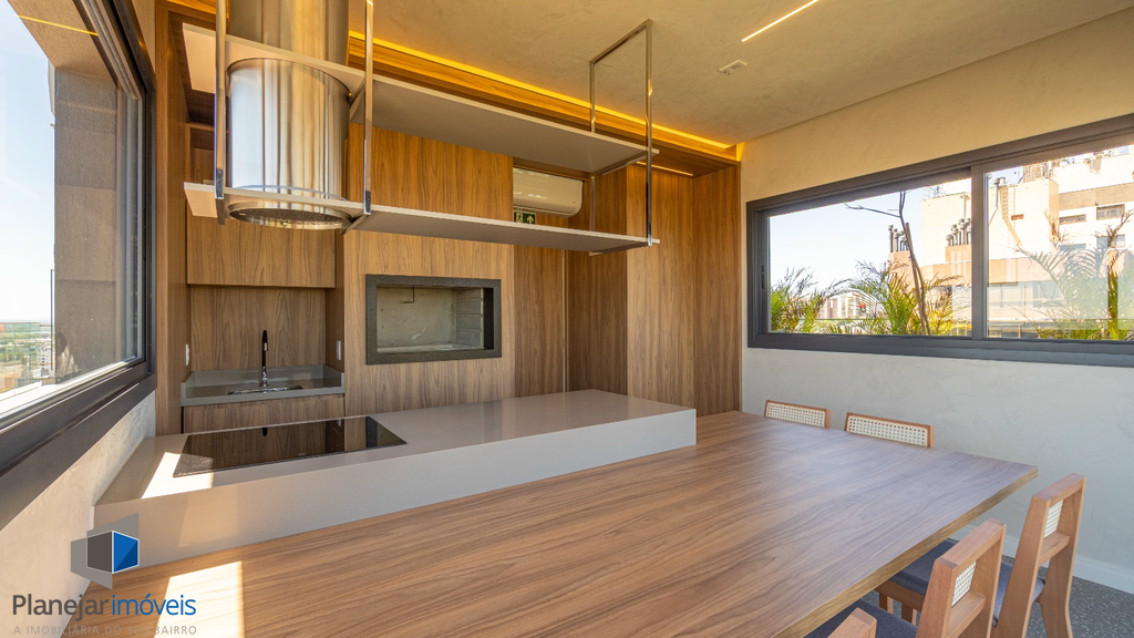 São 118 m² privativos, com 3 dormitórios (1 suíte), amplo living com churrasqueira, cozinha integrada e área de serviço.