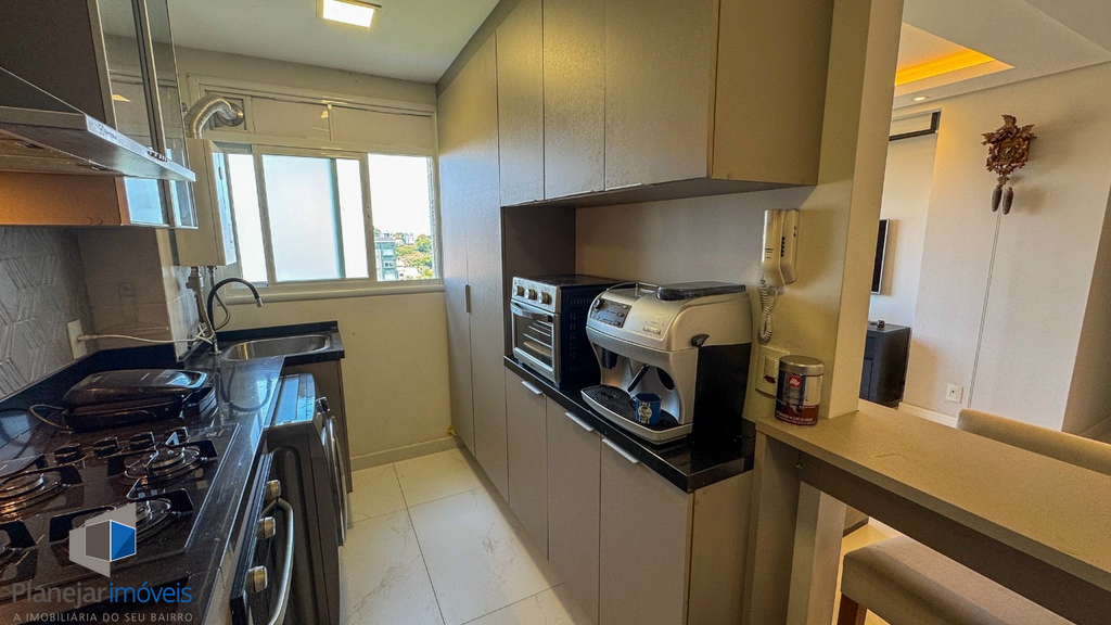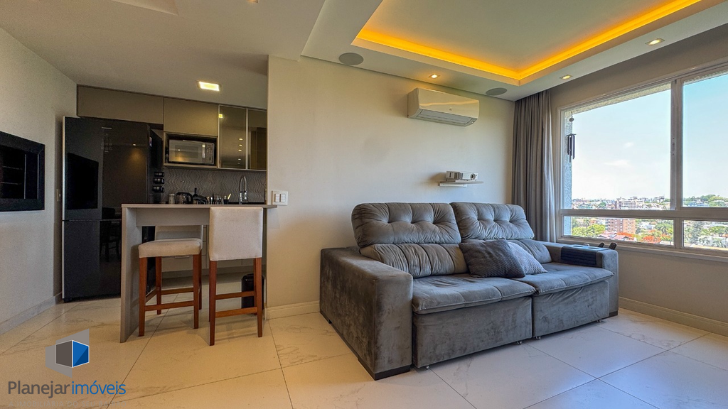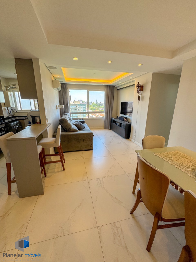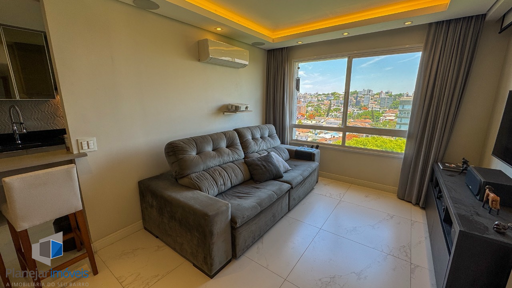 Apartamento para comprar de frente em andar alto com 68 m2, semi-mobiliado com 2 dormitórios 1 suíte 1 vaga/box garagem elevador portaria 24 horas Porto Alegre Jardim Lindóia.