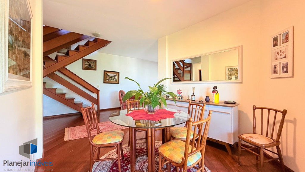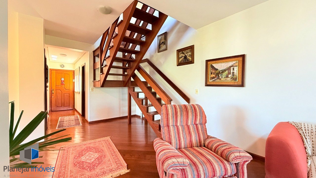 Amplo apartamento, com 328m2 de área privativa, semi-mobiliado, são 3 dormitórios, sendo 1 suíte, gabinete, amplo living com 2 sacadas, lavabo, banheiro social, cozinha com área de serviço separada, água quente. No andar superior, amplo espaço gourmet, churrasqueira, lareira, terraço com piscina e banheiro auxiliar.