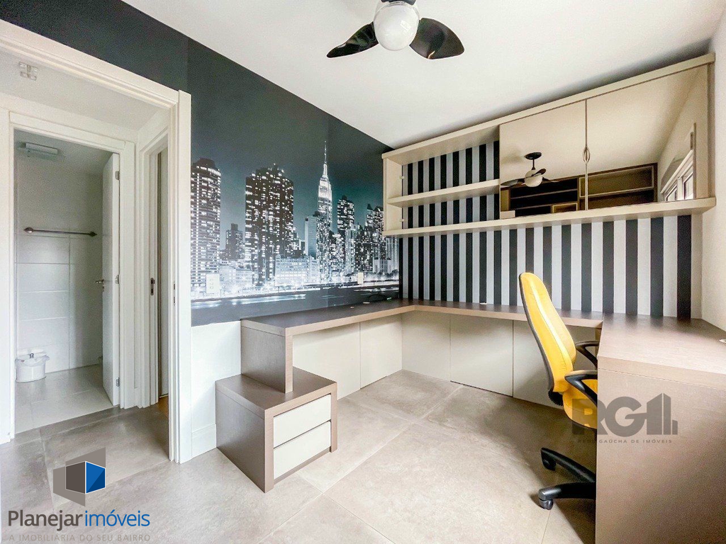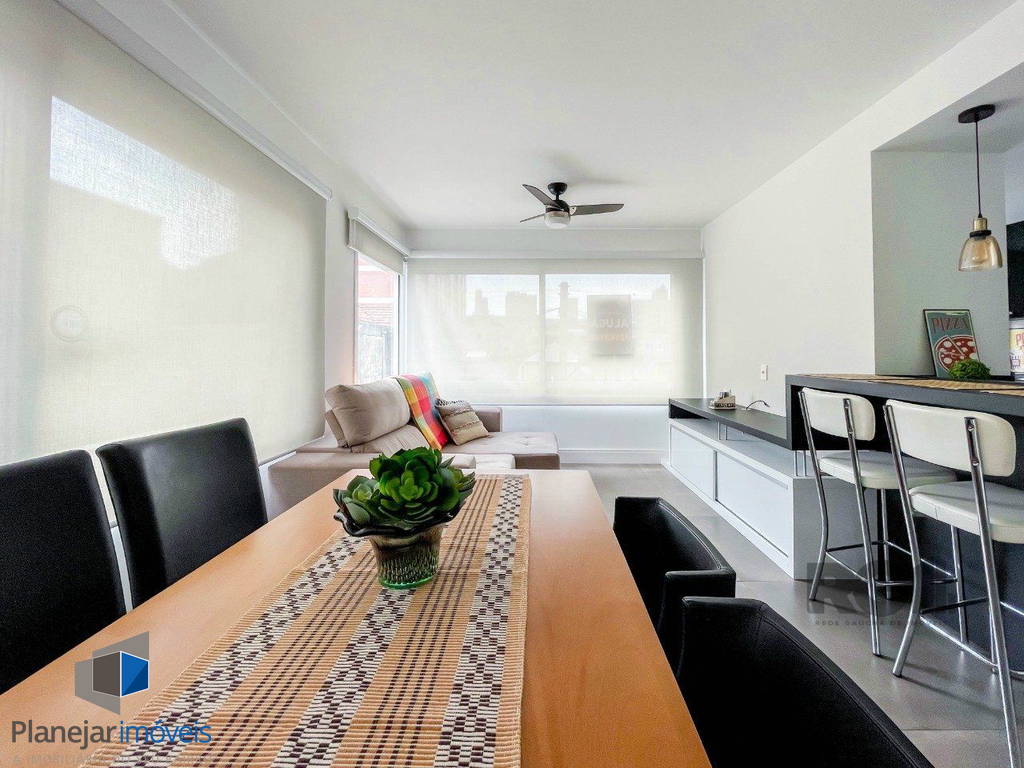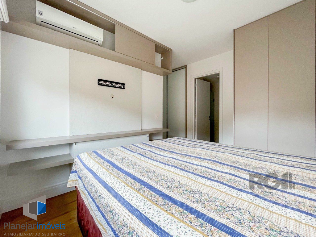 Apartamento novo de 70m², mobiliado e muito bem decorado, 2 dormitórios, sendo 1 com suíte e o outro transformado em escritório / sala de estudos, ambos com ar condicionado, assim como o living de 2 ambientes. A cozinha é planejada e equipada com armários, elétros e churrasqueira. Conta com mais a área de serviço, 1 banheiro social, 1 suíte e 1 vaga de garagem com depósito. Disposto em andar intermediário, de frente, com orientação solar Norte / Oeste.
