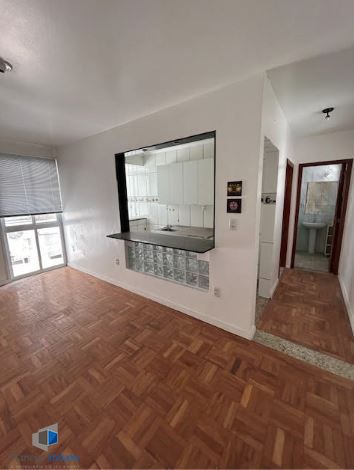 Apartamento com 1 dormitório no bairro Santana em Porto Alegre. Cozinha americana, sala com 2 ambientes, 43,89 m² privativos, banheiro social. Prédio enxuto, 1 lance de escadas.