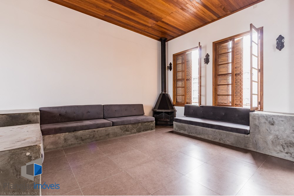 Sala ampla para 3 ambientes, com pé-direito alto (4m) e forro em madeira de lei