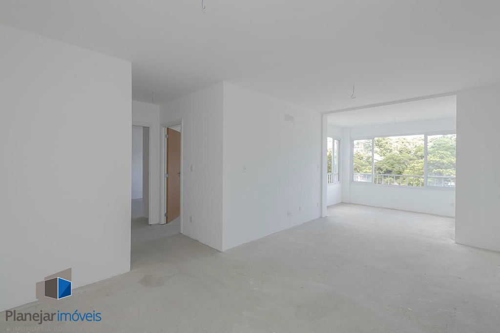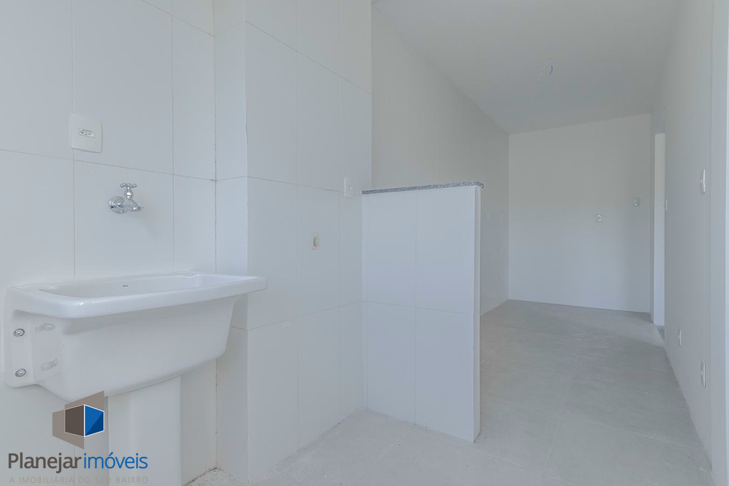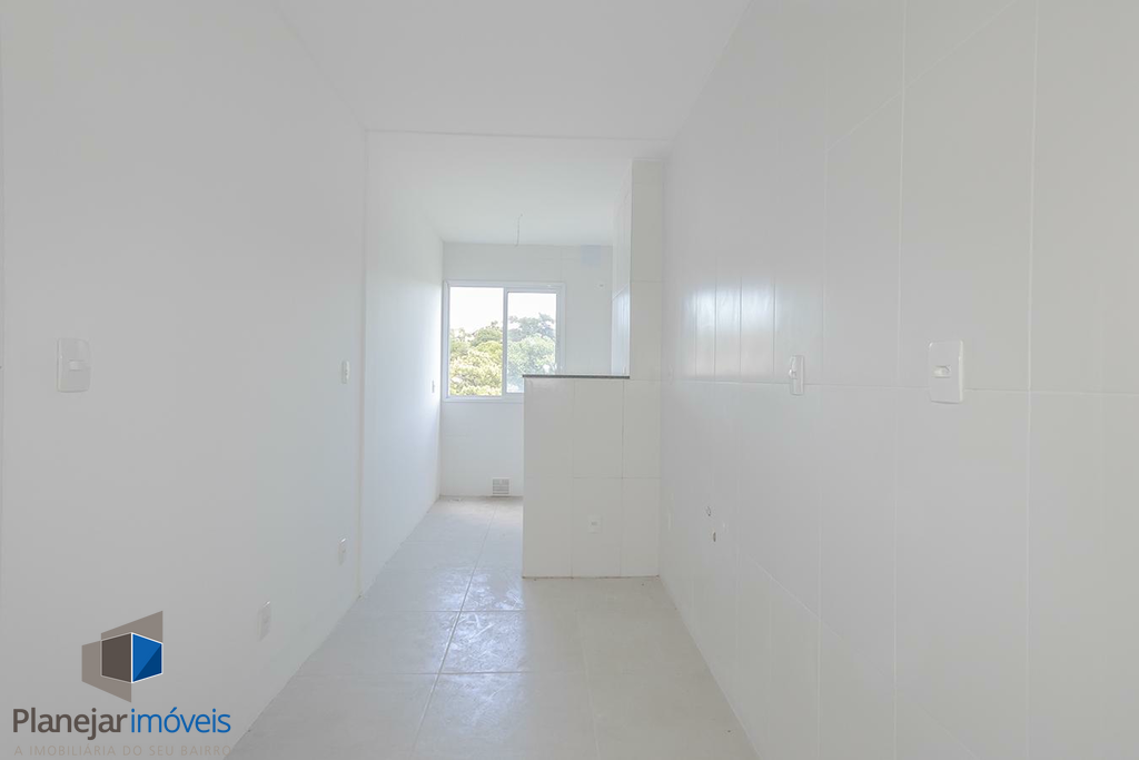 Apartamento 76,56m² de fundos, com 2 dormitórios sendo 1 suite, banheiro social, cozinha americana, com area de serviço integrada, espera para churrasqueira, living 2 ambientes e 2 vagas. Piso porcelanato nas áreas molhadas.