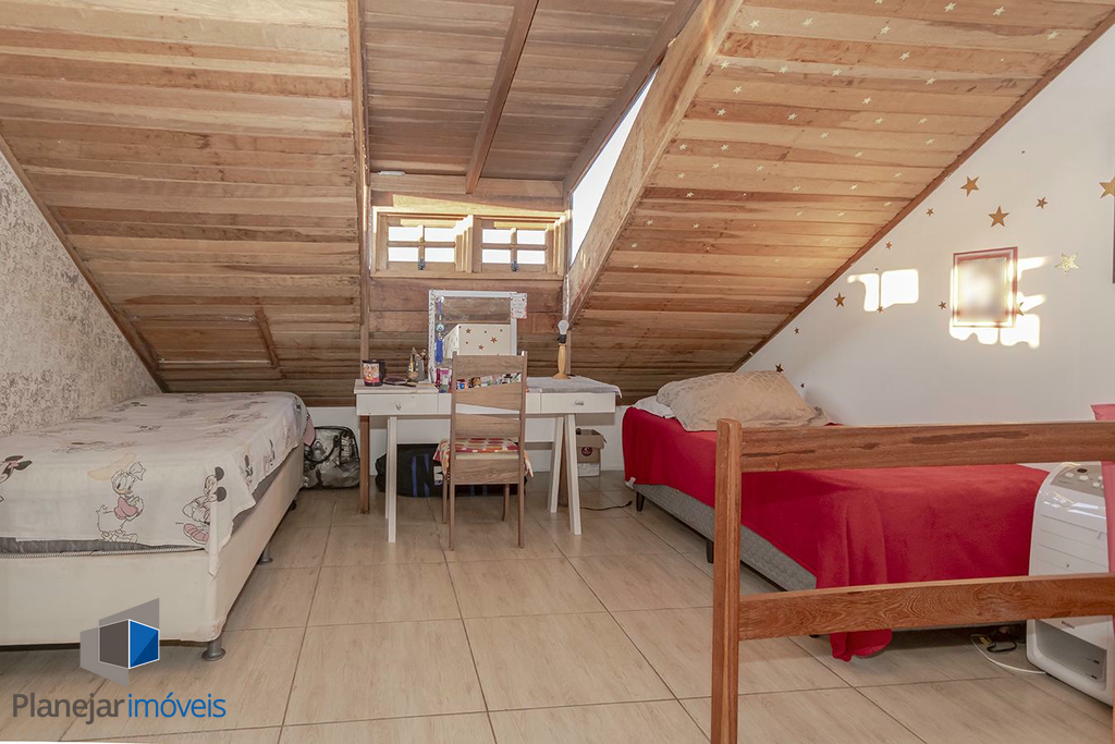 Um dos grandes diferenciais deste sobrado é o sótão versátil, que pode ser facilmente adaptado para um terceiro dormitório ou um home office, conforme a sua necessidade. Além disso, a frente da casa oferece espaço privativo para o estacionamento de dois carros.