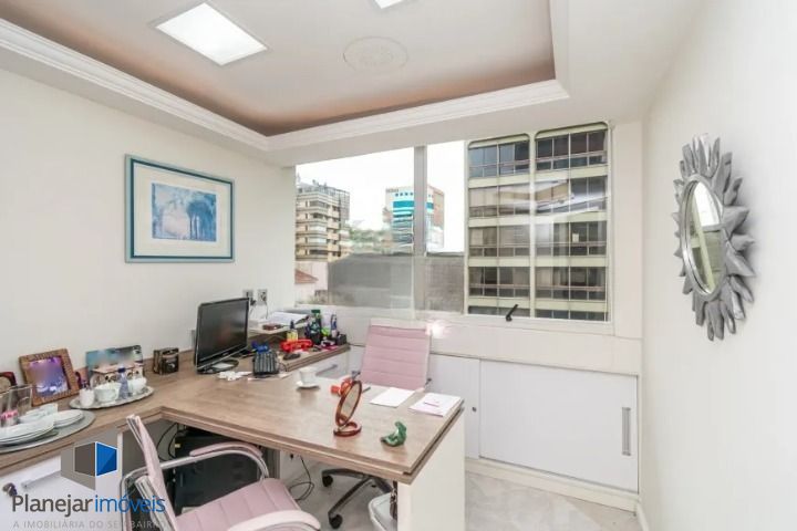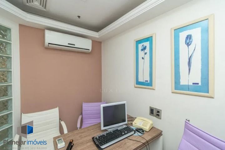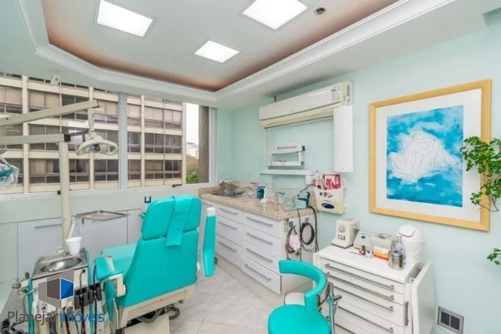 Conjunto comercial com 150m², ideal para uma clínica odontológica. Possui três salas de atendimento, três consultórios, dois banheiros, recepção com sala de espera, copa, terraço, laboratório de prótese e esterilização e splits. O sistema de compressores está ativo e há 1 vaga descoberta de estacionamento. O prédio conta com portaria 24h, monitoramento de segurança, elevadores e serviço de zeladoria, o que garante comodidade e segurança para os usuários e clientes.