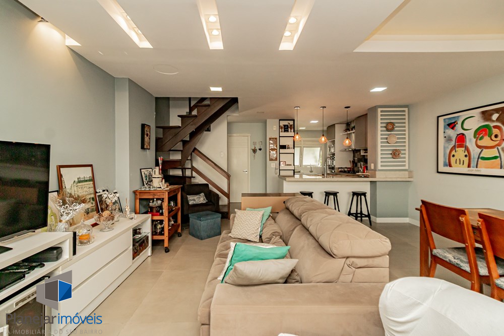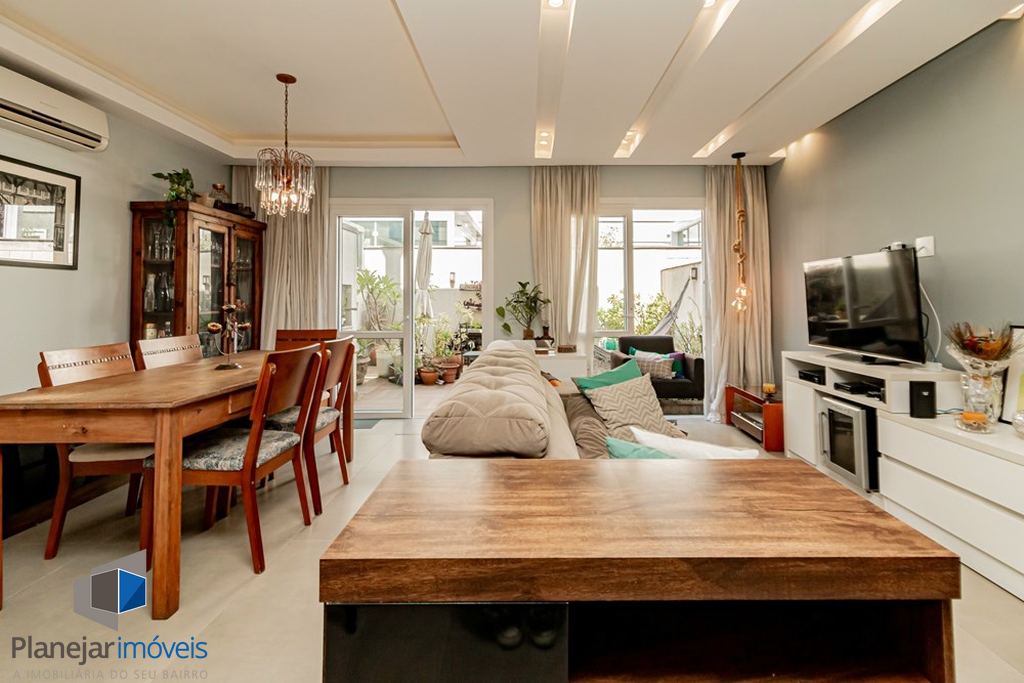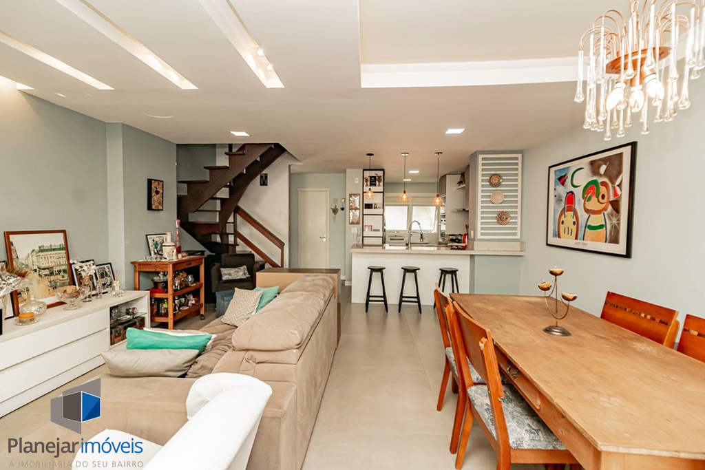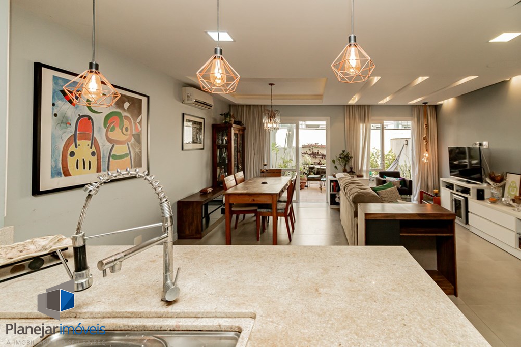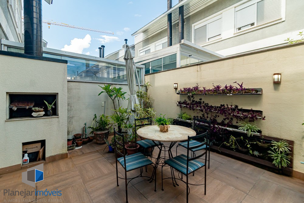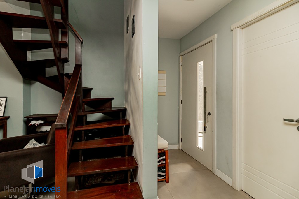 A casa tem 3 níveis: no térreo um hall de entrada ,um lavabo, uma cozinha americana com móveis planejados que se integra perfeitamente ao estar social com amplos espaços para toda família se reunir. Na sequência um jardim privativo com churrasqueira, entre plantas e flores.