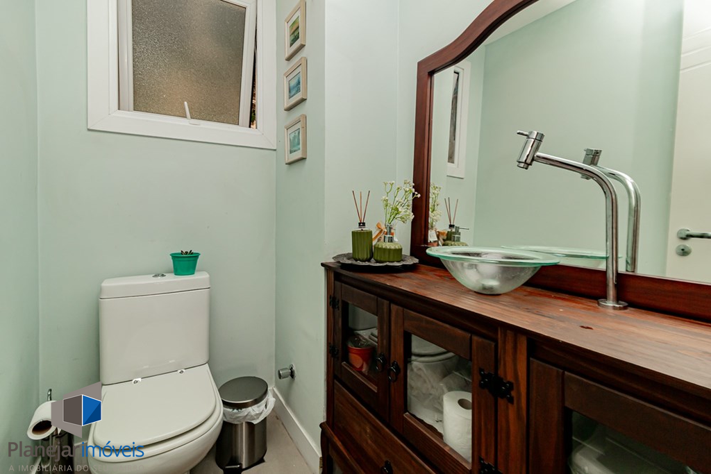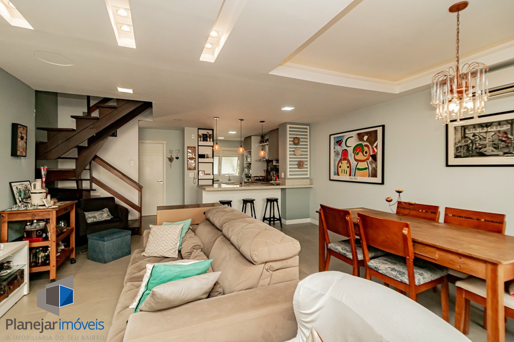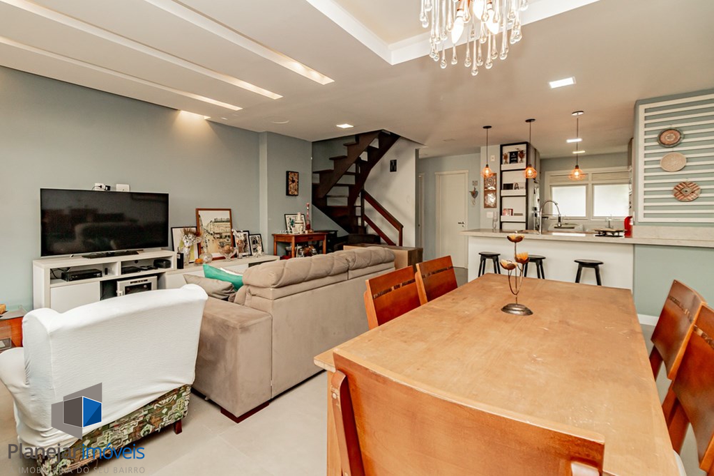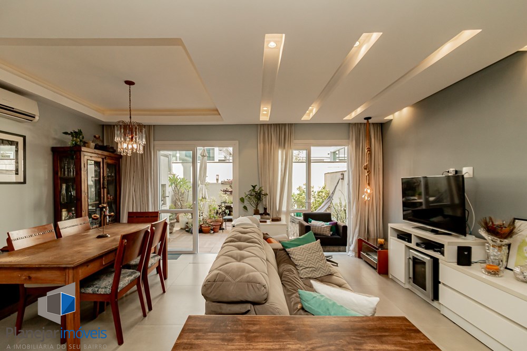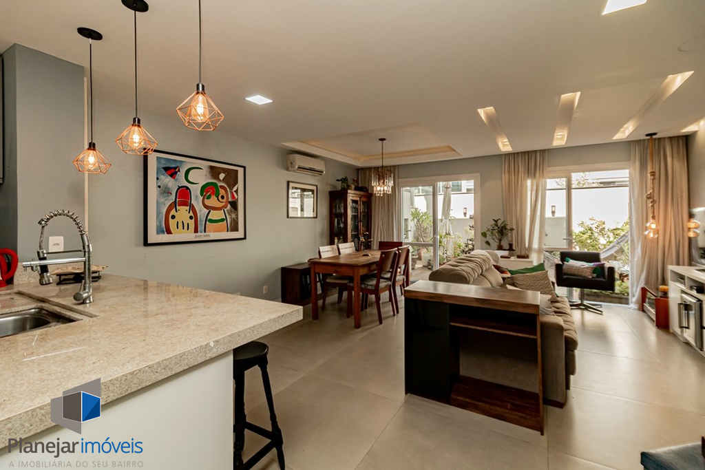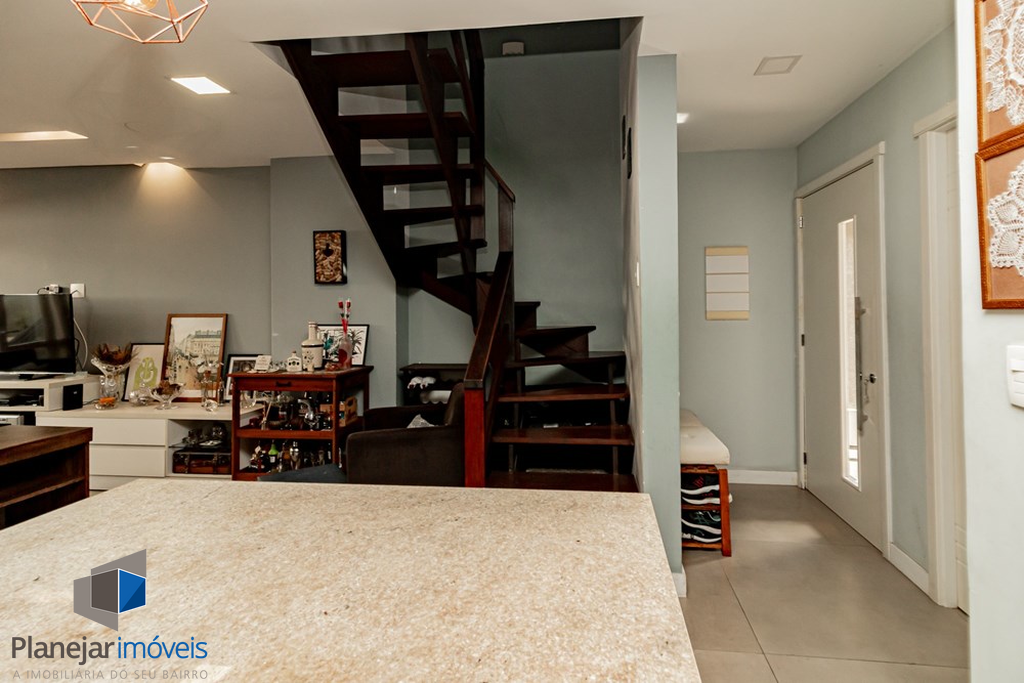 A casa tem 3 níveis: no térreo um hall de entrada ,um lavabo, uma cozinha americana com móveis planejados que se integra perfeitamente ao estar social com amplos espaços para toda família se reunir. Na sequência um jardim privativo com churrasqueira, entre plantas e flores.