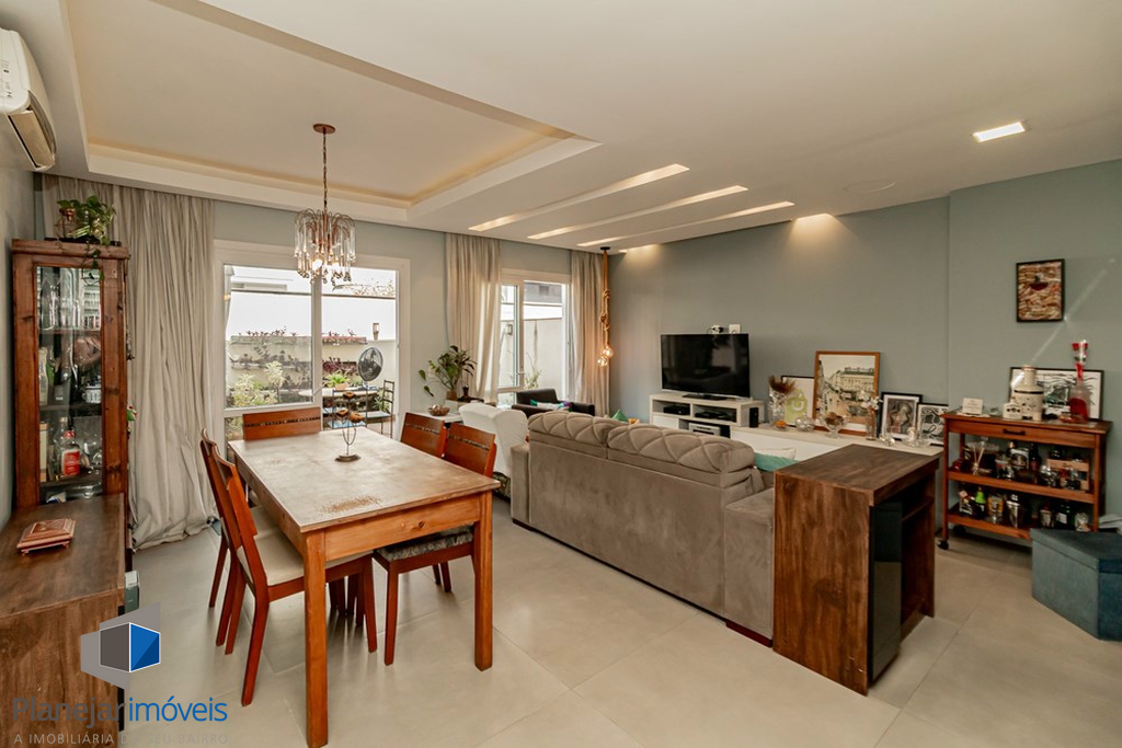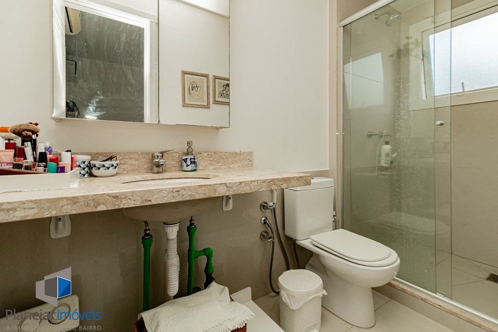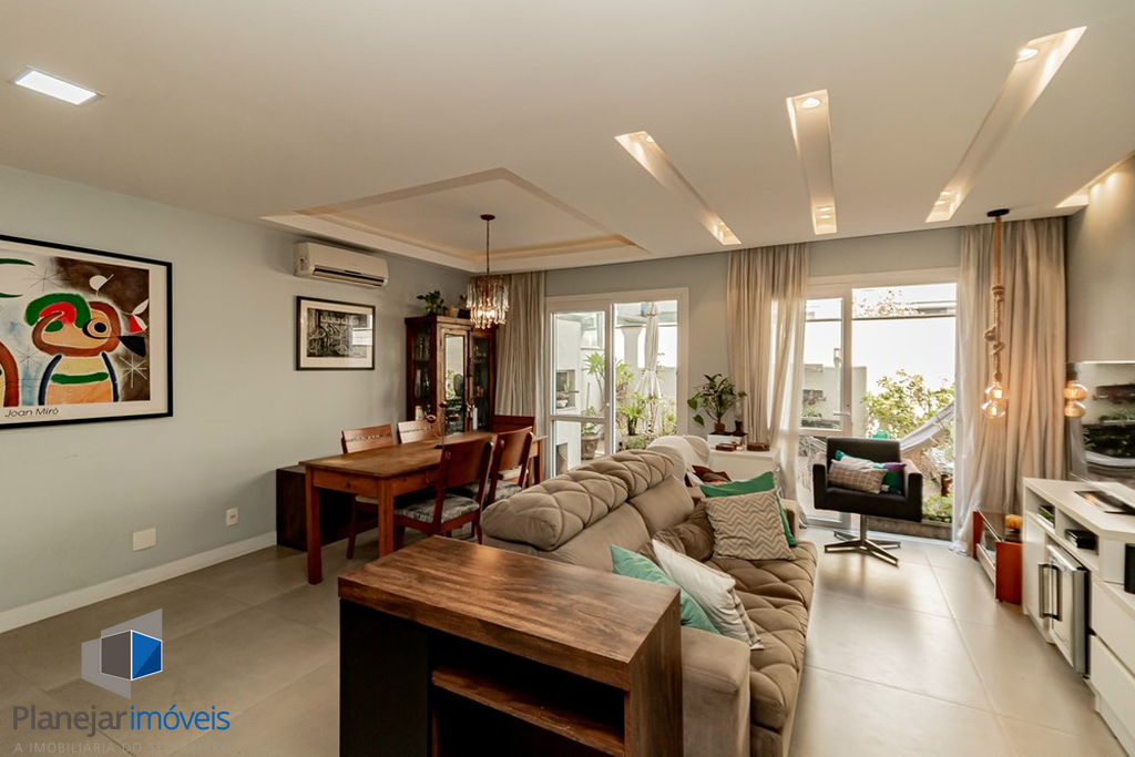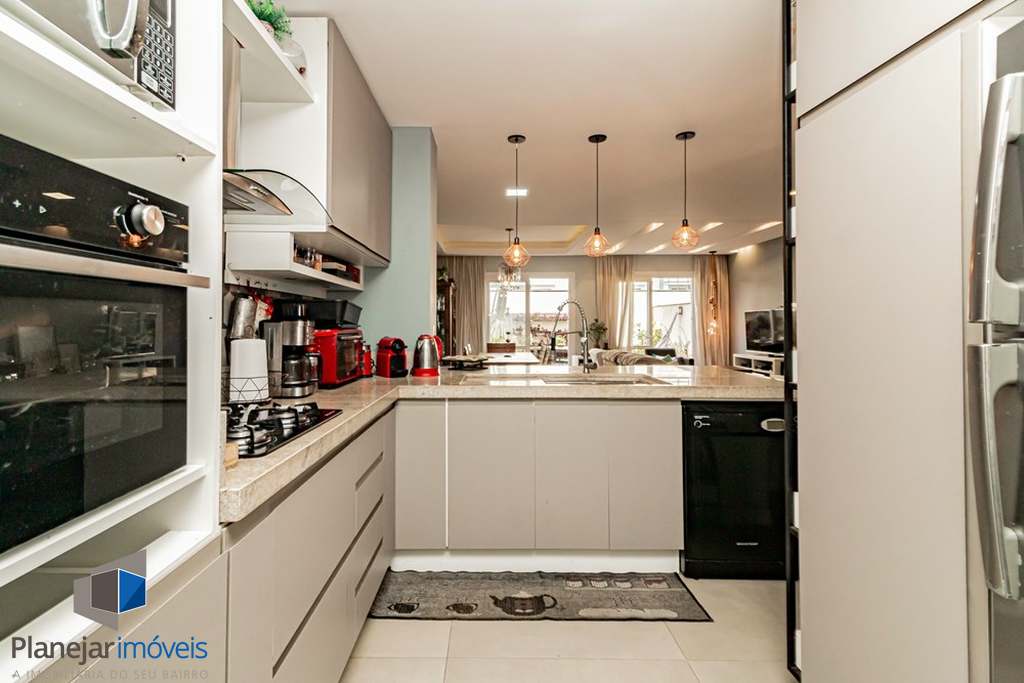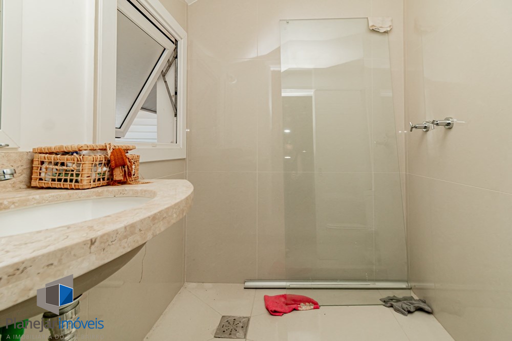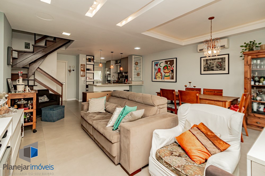 A casa tem 3 níveis: no térreo um hall de entrada ,um lavabo, uma cozinha americana com móveis planejados que se integra perfeitamente ao estar social com amplos espaços para toda família se reunir. Na sequência um jardim privativo com churrasqueira, entre plantas e flores.