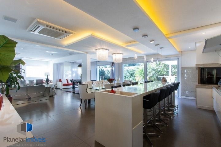 Descubra o seu refúgio particular neste imóvel incrível, que combina luxo, conforto e segurança, numa localização privilegiada, fica o condomínio de Casas de Alto Padrão Las Rocas na Zona Sul de Porto Alegre. Esta mansão de 5 dormitórios é perfeita para famílias que buscam viver com tranquilidade e comodidade em uma das regiões mais cobiçadas da cidade. A casa tem o projeto de mobiliário de alto padrão distribuídos em 2 andares com uma planta perfeitamente pensada, hall de entrada iluminado que leva a uma ampla sala de estar com lareira e mesa de bilhar, sala de jantar com mesa para 10 pessoas, e, um esplêndido espaço gourmet com bancada em granito para 12 pessoas. É o espaço ideal para reunir a família e amigos, preparar deliciosas refeições e compartilhar momentos inesquecíveis., com churrasqueira, champanheira embutida, frigobar, cooktop, forno, depurador todos eletrodomésticos modernos. A área social conta com piscina cromoterápica, prainha e lavabo externo. São 5 dormitórios, sendo 2 suítes, 1 delas com banheira e closet, que vão acomodar toda a família confortavelmente mantendo a privacidade. Cada quarto é cuidadosamente projetado para proporcionar um ambiente acolhedor e relaxante, com amplos armários embutidos e detalhes de design impecáveis. A casa possui amplas janelas, permitindo que a luz natural invada todos os ambientes. Integração com a natureza: O Condomínio Las Rocas é cercado por uma exuberante área verde, proporcionando uma atmosfera tranquila e contato direto com a natureza e ás margens do Rio Guaíba. Lazer e segurança: O condomínio conta com uma completa infraestrutura de lazer, incluindo piscina, quadra esportiva, playground e espaços para caminhadas ao ar livre, salão de festas, espaço gourmet e deck sobre o rio. A segurança é prioridade, com vigilância 24 horas e acesso restrito com eclusa de segurança, para você e sua família aproveitarem momentos de lazer com tranquilidade. Localização privilegiada: O bairro Pedra Redonda é conhecido por sua excelente infraestrutura, comércio variado e fácil acesso a vias importantes da cidade. Próximo a escolas, supermercados, shoppings e restaurantes renomados, você estará cercado de conveniências. O condomínio foi construído em um terreno de 24.000 m2 na orla do Guaíba, são apenas 23 casas independentes, não geminadas, com muito espaço livre, muita área verde preservada e excelentes pátios privativos. Completa infraestrutura de serviços, segurança e lazer, contando com salão de festas, sala de jogos, quadra de tênis de saibro coberta, sala fitness, sauna, brinquedoteca, playground, piscina aquecida com raia e muito mais. Não perca essa oportunidade única de viver em uma casa espetacular no Condomínio Las Rocas, no bairro Pedra Redonda. Entre em contato conosco agora mesmo para agendar uma visita e garantir o seu novo lar. Esta é a chance de proporcionar à sua família um estilo de vida único, com todo o conforto, segurança e elegância que merecem. Venha conhecer o seu novo endereço dos sonhos! Preço e disponibilidade do imóvel sujeitos a alteração sem aviso prévio.