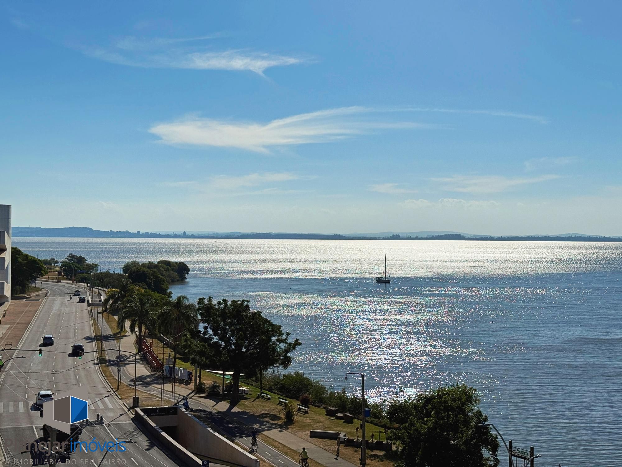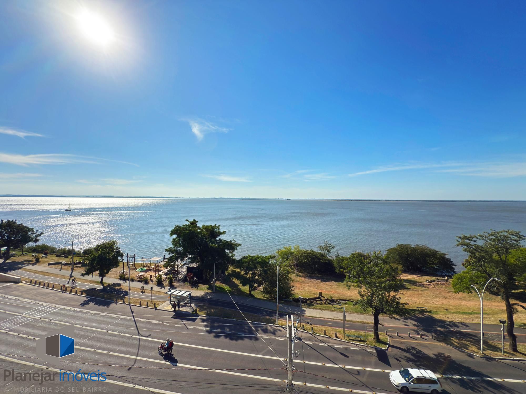 À frente, as águas tranquilas do Guaíba, seus barcos e um dos mais belos entardeceres do Brasil, até onde a vista alcança.