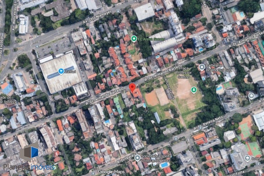 Casa principal com aproximadamente 190,00m², térrea, 3 dormitórios, sala de estar com lareira, escritório, cozinha ampla, banheiro social. A casa dos fundos com aproximadamente 75,00m², usado como salão de festas, com churrasqueira, banheiro social mais dois ambientes podendo ser usado como dormitórios ou escritório. O terreno tem 12,00 metros de frente por 70,00 metros de frente ao fundo, totalizando 840,00m² de área total, próximo ao mercado Zaffari do Bairro Tristeza.