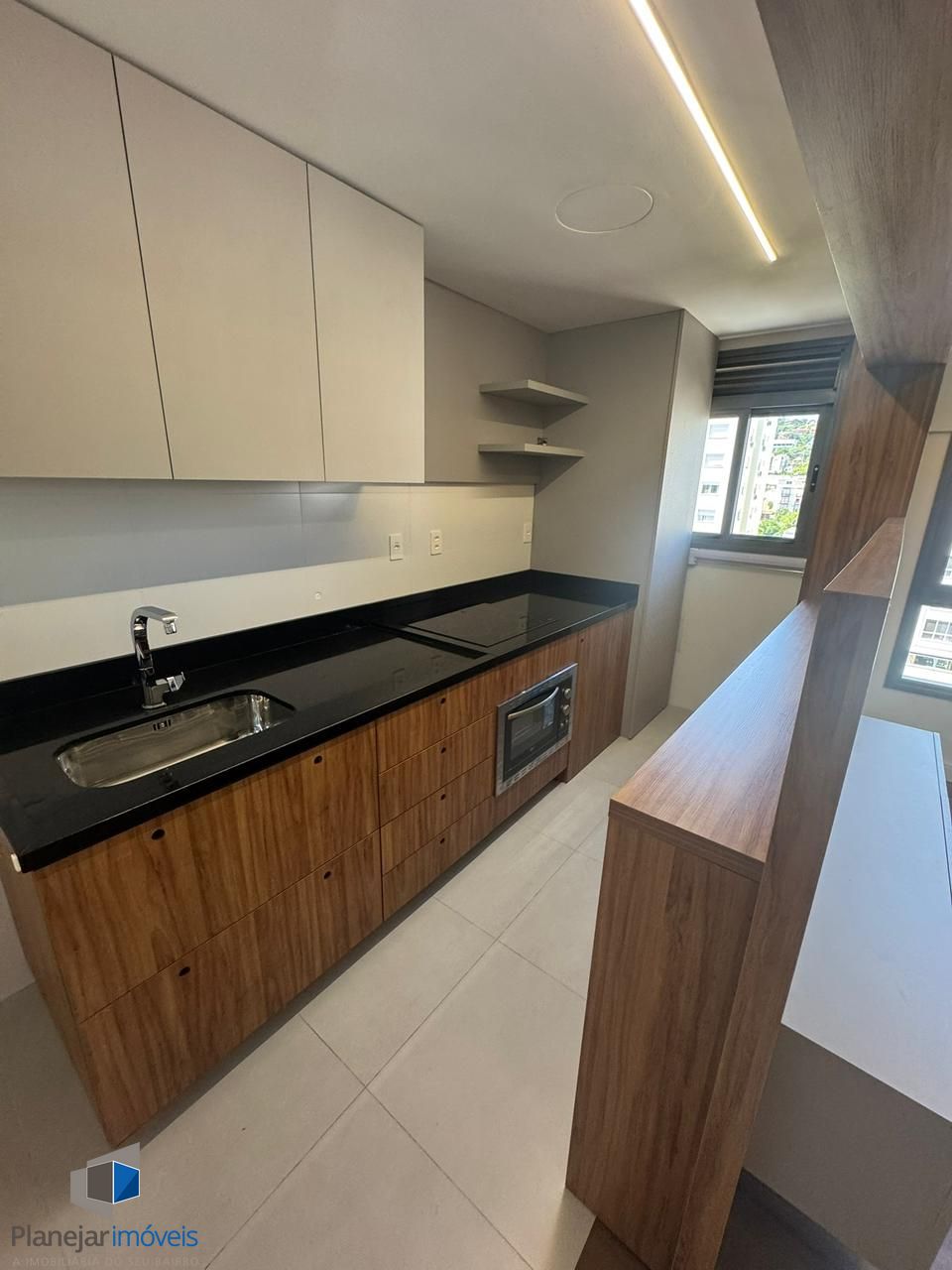 Impecável , studio semi mobiliado, com piso vinílico, cozinha com móveis planejados, churrasqueira, ar condicionado e uma vaga de garagem coberta.