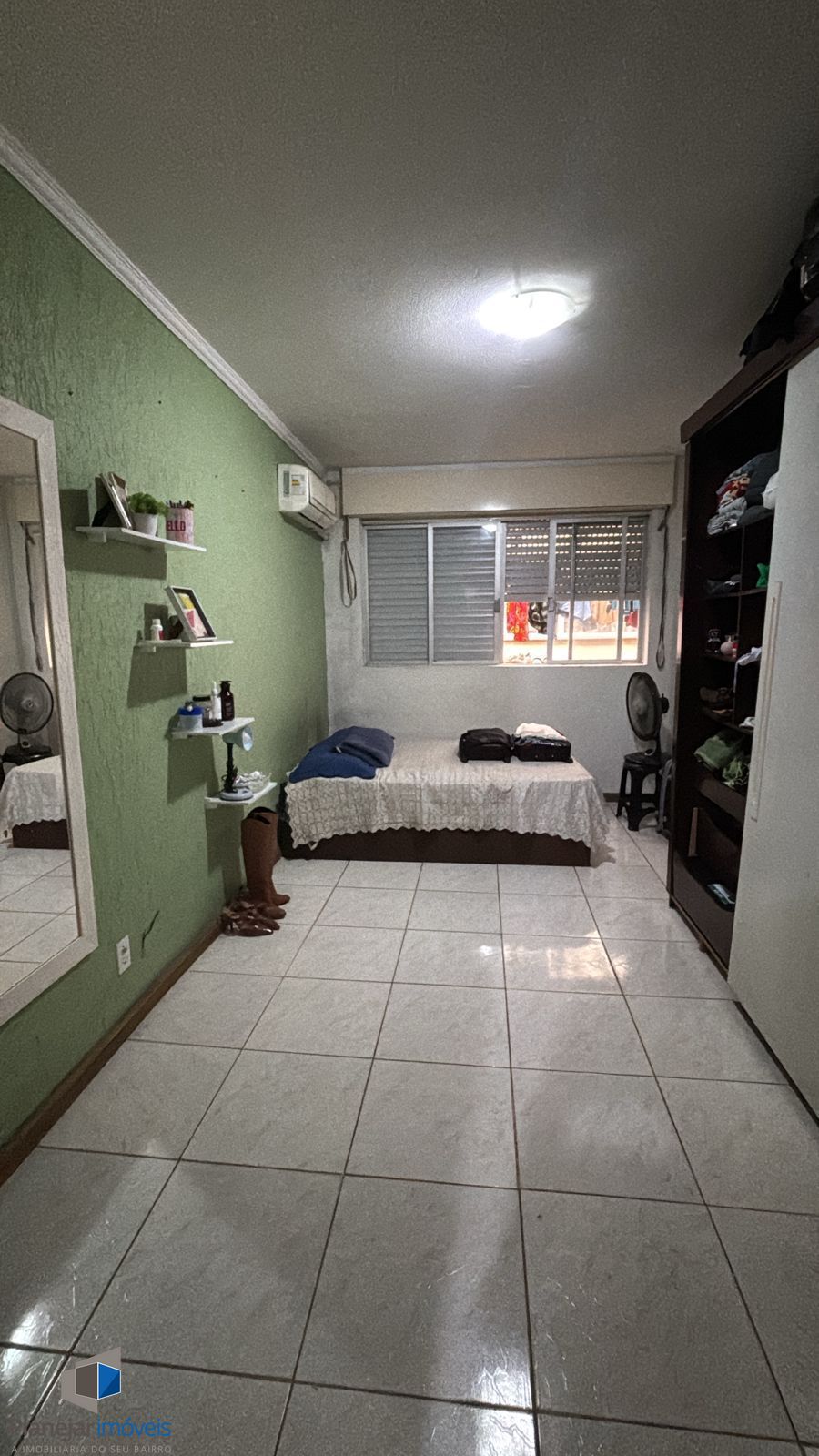 Apartamento com sala ampla, janelas grandes, bem iluminada e ventilada, piso cerâmico.
