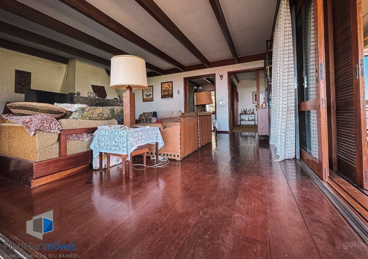 No segundo andar: 03 dormitórios, sendo 01 suíte, living para 03 ambientes com uma bela sacada com vista do Rio Guaíba, lavabo, lareira, sala de jantar, cozinha, área de serviço e depósito.
