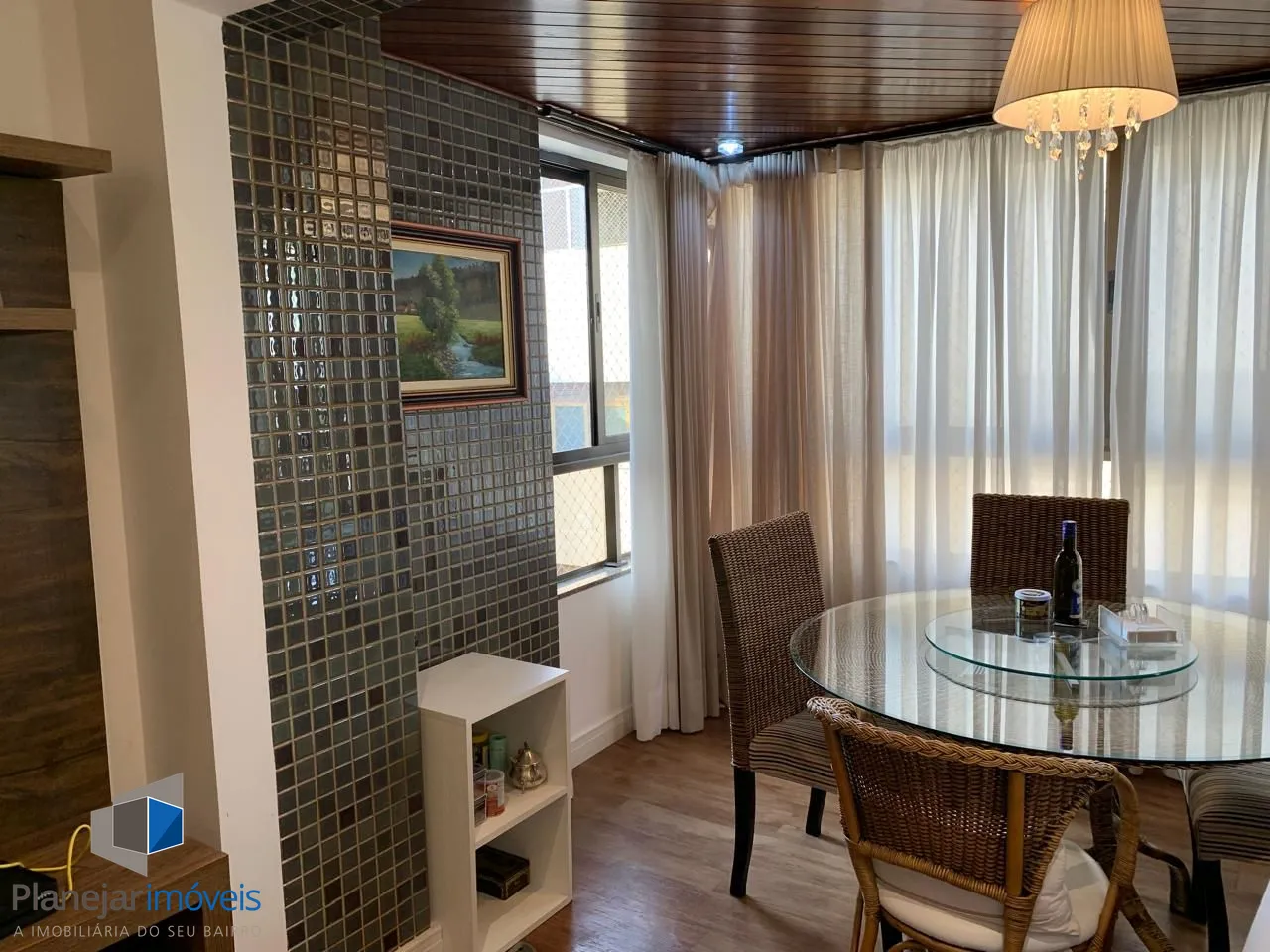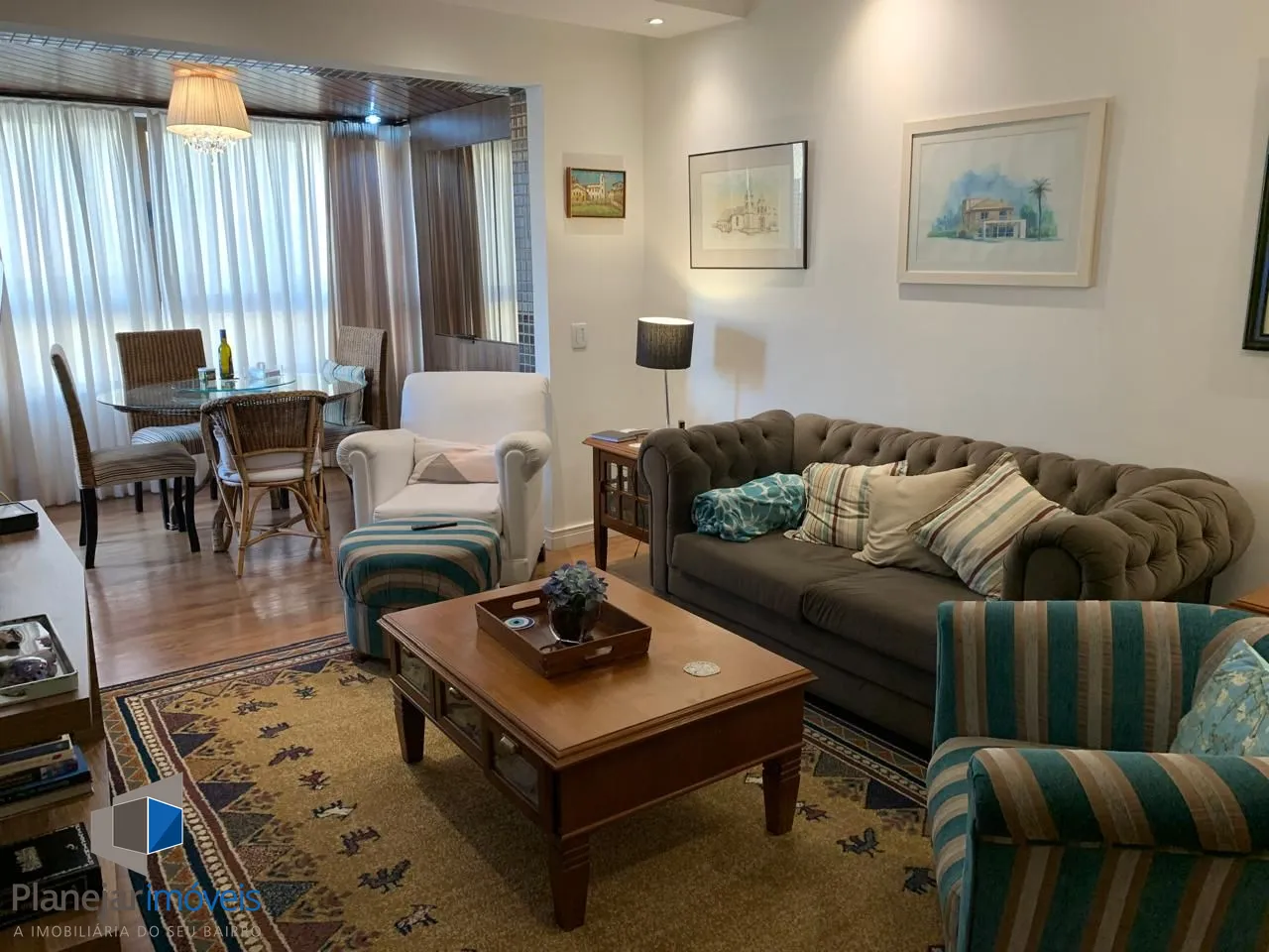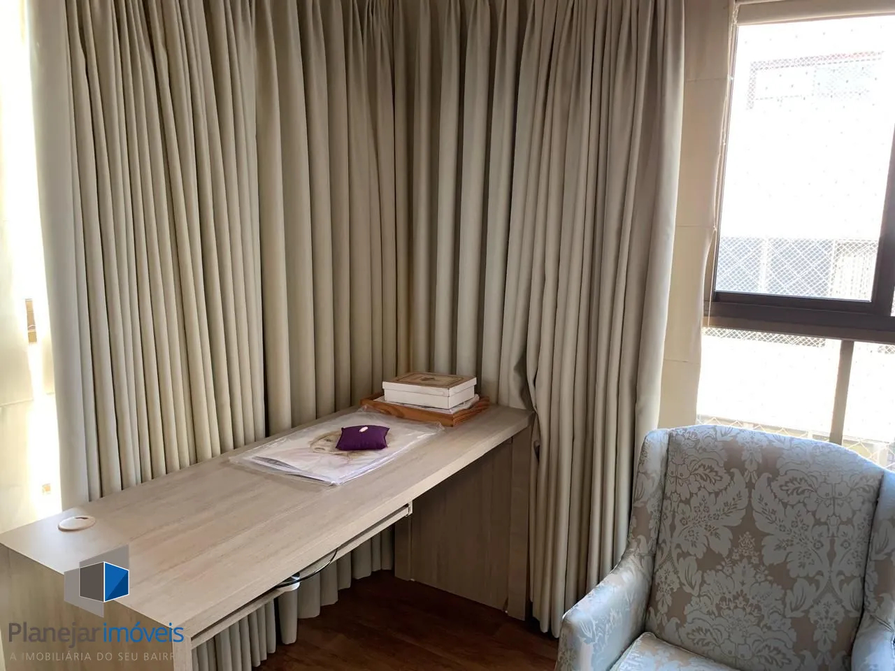 Amplo living para 03 ambientes, sacada totalmente envidraçada proporcionando um belo recanto com lareira. Todas aberturas em madeira de lei pintadas de branco fosco. cozinha planejada em perfeito estado de conservação, área de serviço completa e dependência empregada com banheiro.
