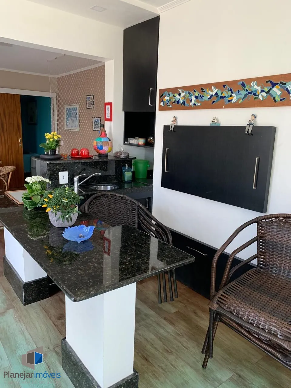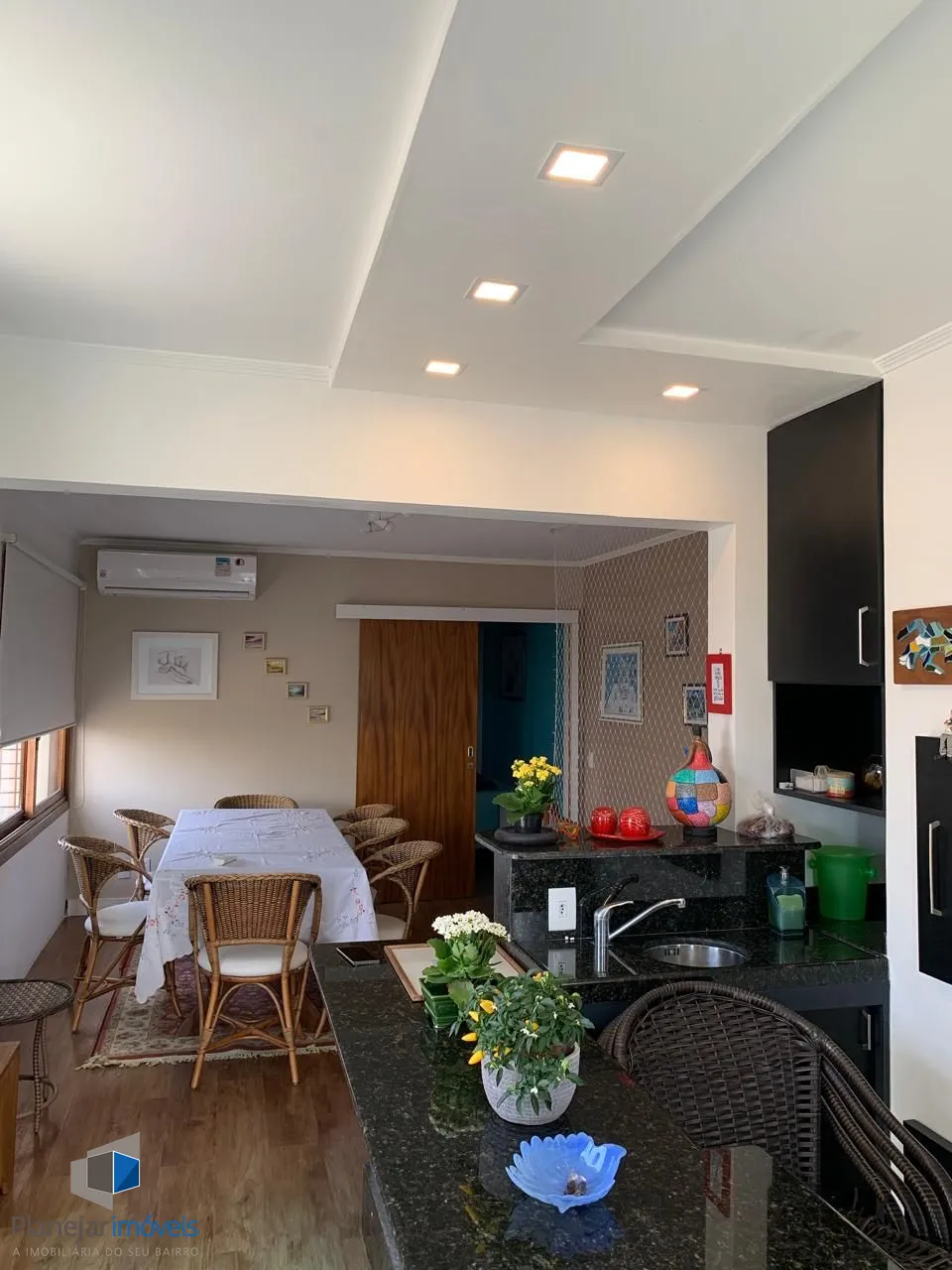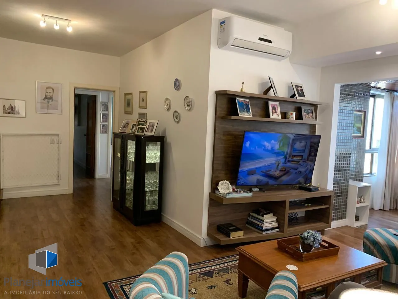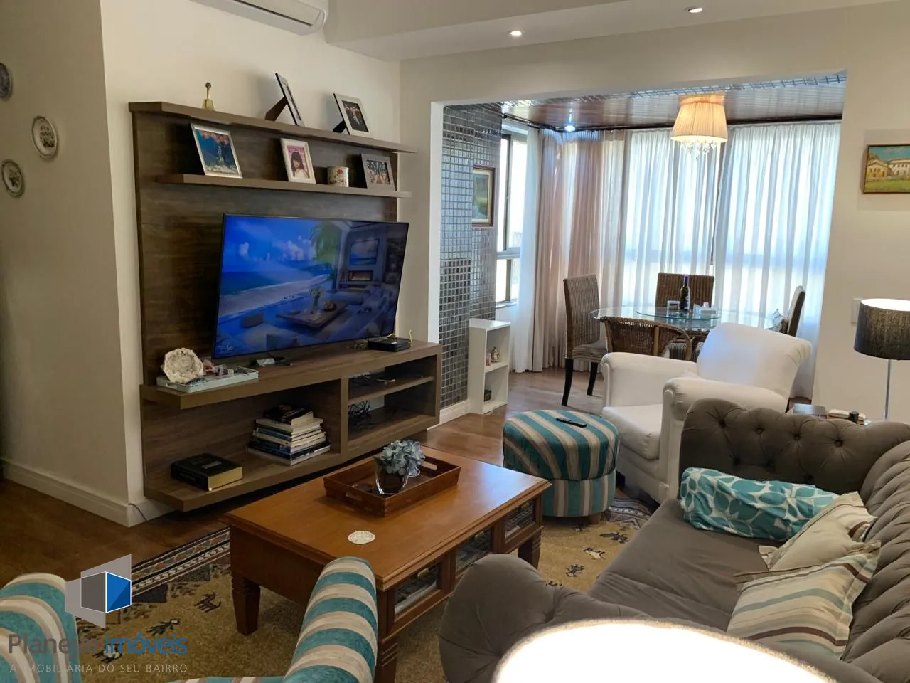 Amplo living para 03 ambientes, sacada totalmente envidraçada proporcionando um belo recanto com lareira. Todas aberturas em madeira de lei pintadas de branco fosco. cozinha planejada em perfeito estado de conservação, área de serviço completa e dependência empregada com banheiro.
