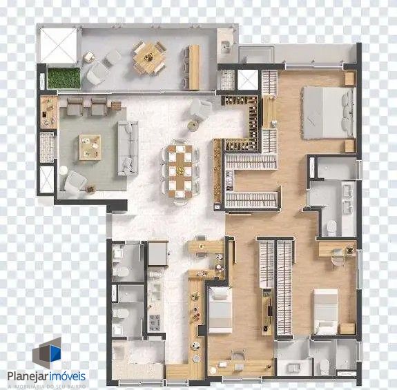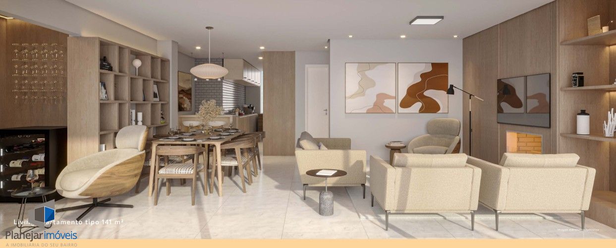 Com 03 Suítes, sendo 01 Master e 02 Americanas, amplo living com lareira, ampla sacada, churrasqueira, cozinha americana, área de serviço com banheiro auxiliar e lavabo.