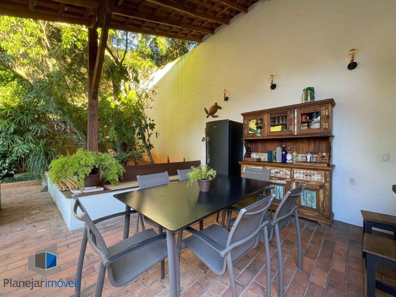 No Pavimento térreo garagem coberta para 4 carros, pátio com projeto de paisagismo exuberante, piscina aquecida, churrasqueira externa e banheiro de apoio. Área de serviço completa com dependência de empregada.