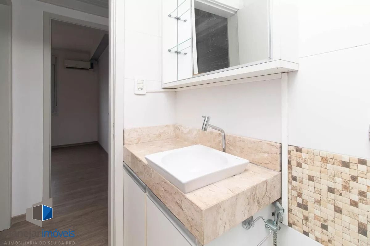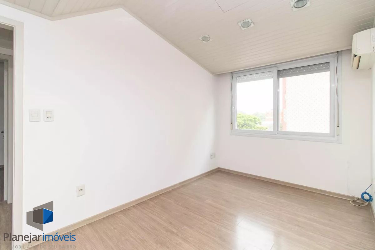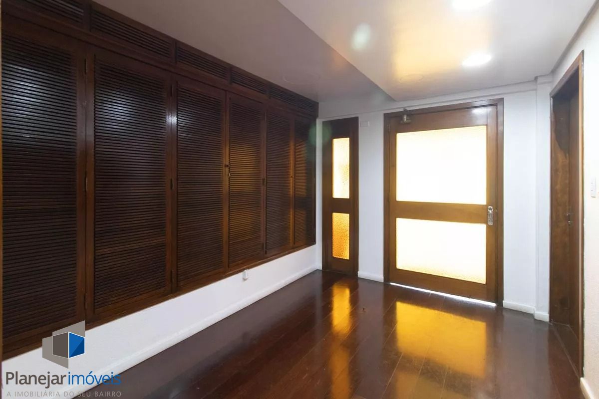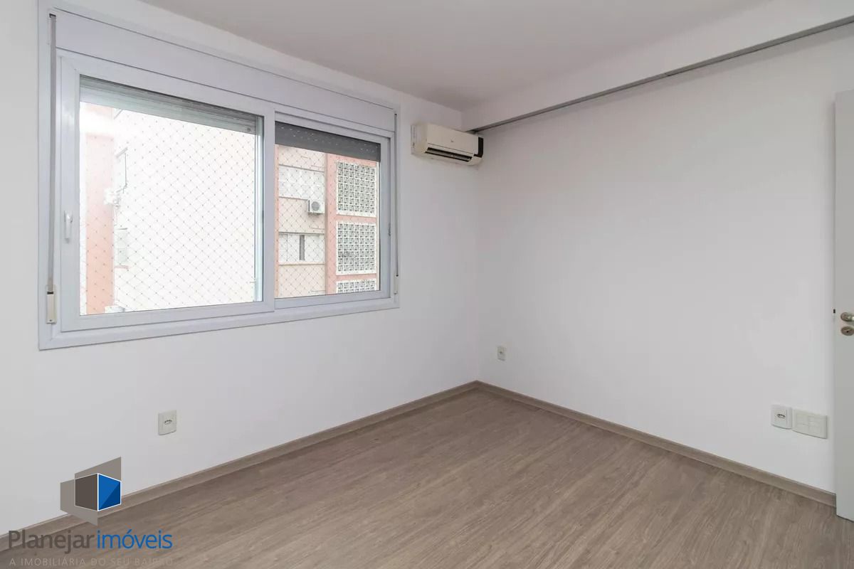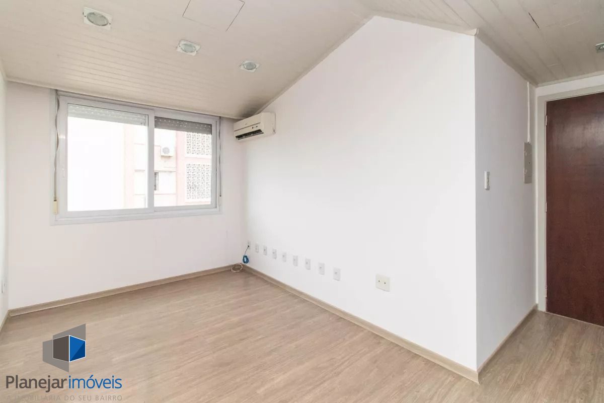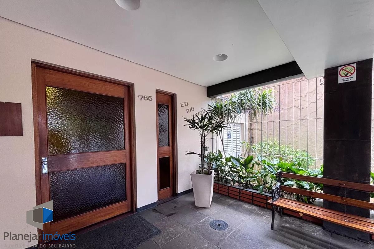 Cobertura de frente para a Washington Luís com uma vista panorâmica (grandioso terraço em formato U), posição solar leste -oeste. 124m2 de área privativa. Parte inferior: sala, cozinha com armários, área de serviço com armário e WC separado, banheiro principal e 02 dormitórios (o maior com armário embutido). Tem ar condicionado em 02 peças e escada reta em madeira para acesso ao segundo piso. Parte superior: salão, banheiro secundário, despensa e terraço com churrasqueira, pia e armário. Há uma vaga de garagem escriturada e coberta. O edifício aceita pets, tem elevador e portão eletrônico, conta com zeladoria e é próximo a supermercado, academia, restaurantes, espaço lazer cultural como o Gasômetro, perto também da faculdade de direito da UFRGS e Parque Farroupilha.