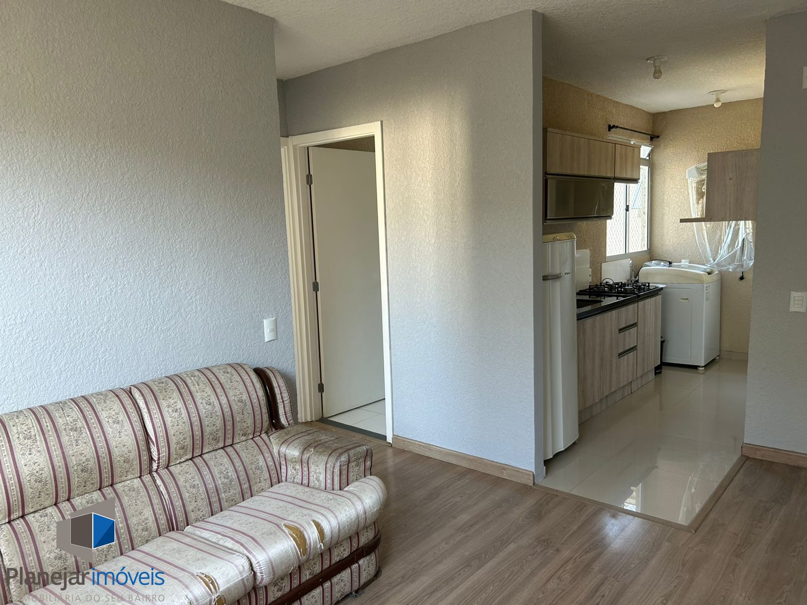Já com cozinha com móveis e elétros e fica no 5°andar, ótima posição solar. Piso de porcelanato, cozinha,sala, área de serviço, banheiro social. 1 vaga de garagem.