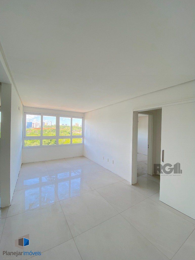 Apartamento novo para comprar com 53m² privativos, 1 Dormitório de ótimo tamanho com persianas em 2 folhas e excelente padrão de esquadrias nas janelas, living com piso porcelanato Portobello (90cm x 90cm), cozinha americana com churrasqueira, sanca em gesso pronta com esperas para iluminação e split em todos os ambientes, banheiro social e água quente em todas as torneiras. 1 vaga de garagem coberta e escriturada.