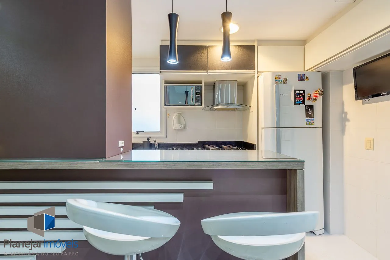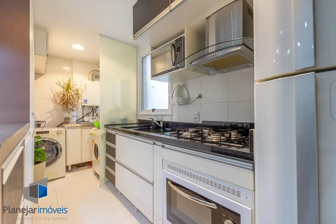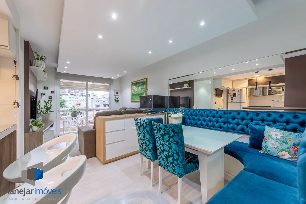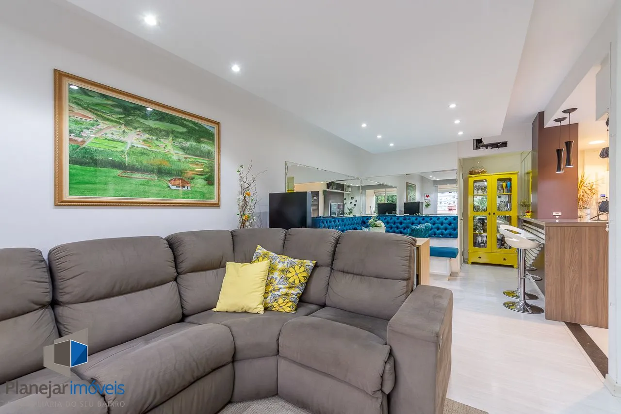 Apartamento semimobiliado com 73 m de área privativa com 2 dormitórios sendo 1 suíte, banheiro social, living amplo pra 3 ambientes com sacada e churrasqueira, cozinha americana planejada com área de serviço individual. Possui 1 vaga de garagem coberta e escriturada.