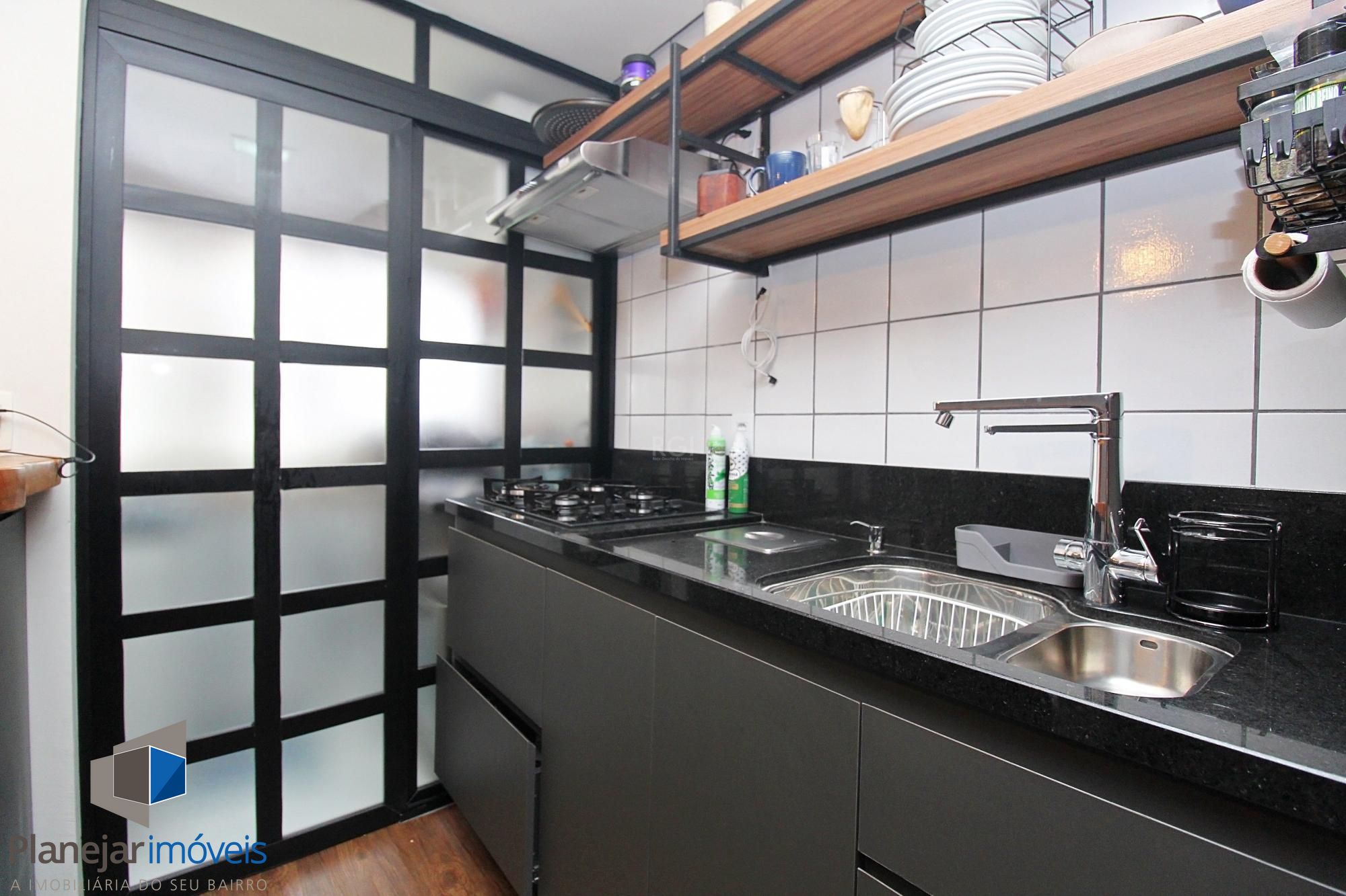 Excelente apartamento, pronto para morar no bairro Petrópolis. Apartamento de 01 (um) dormitório, de frente com sacada integrada e cozinha americana. Área de serviço espaçosa e separada. Uma vaga de garagem escriturada e coberta. Prédio pequeno, com elevador e salão de festas com churrasqueira.