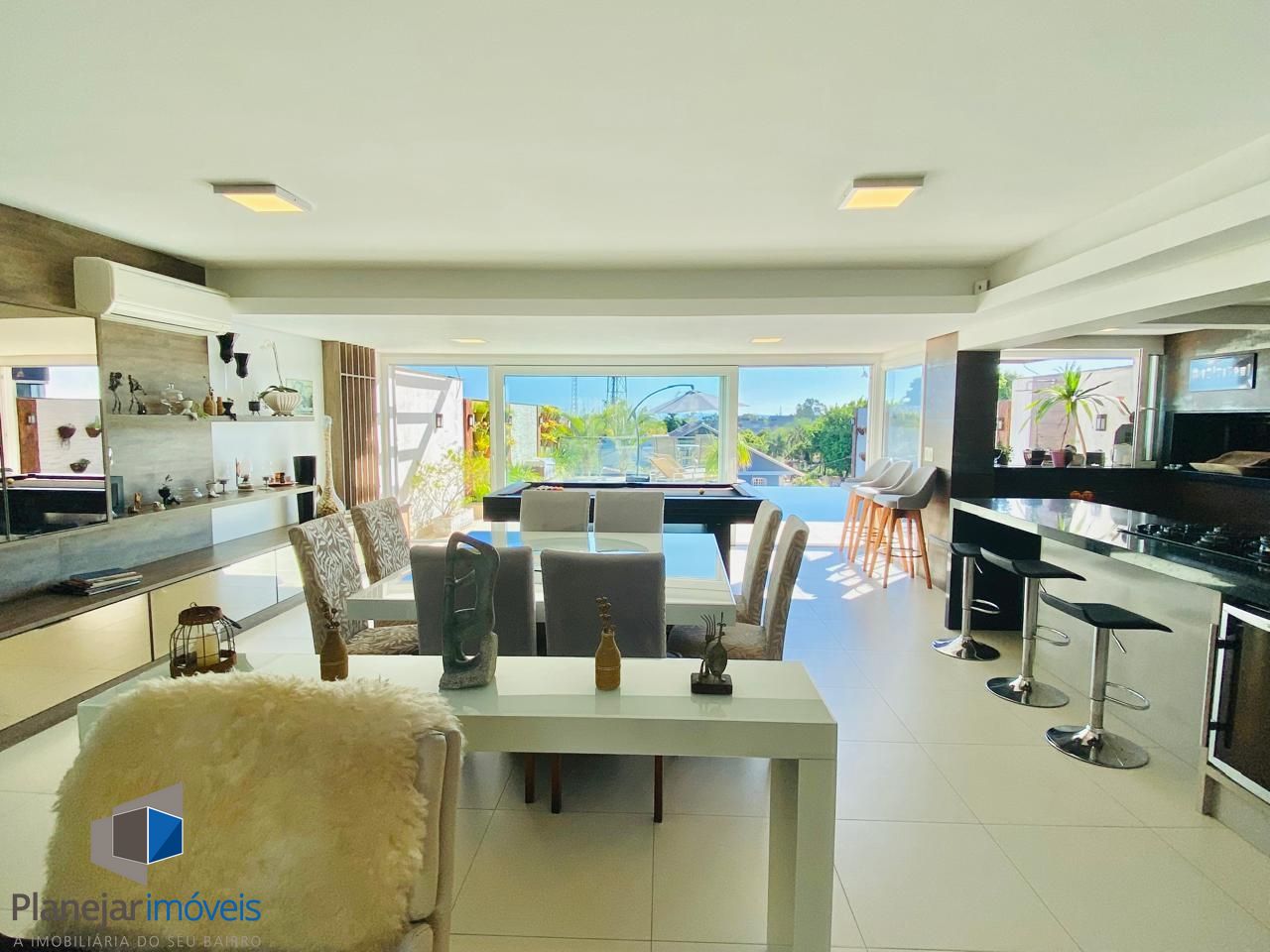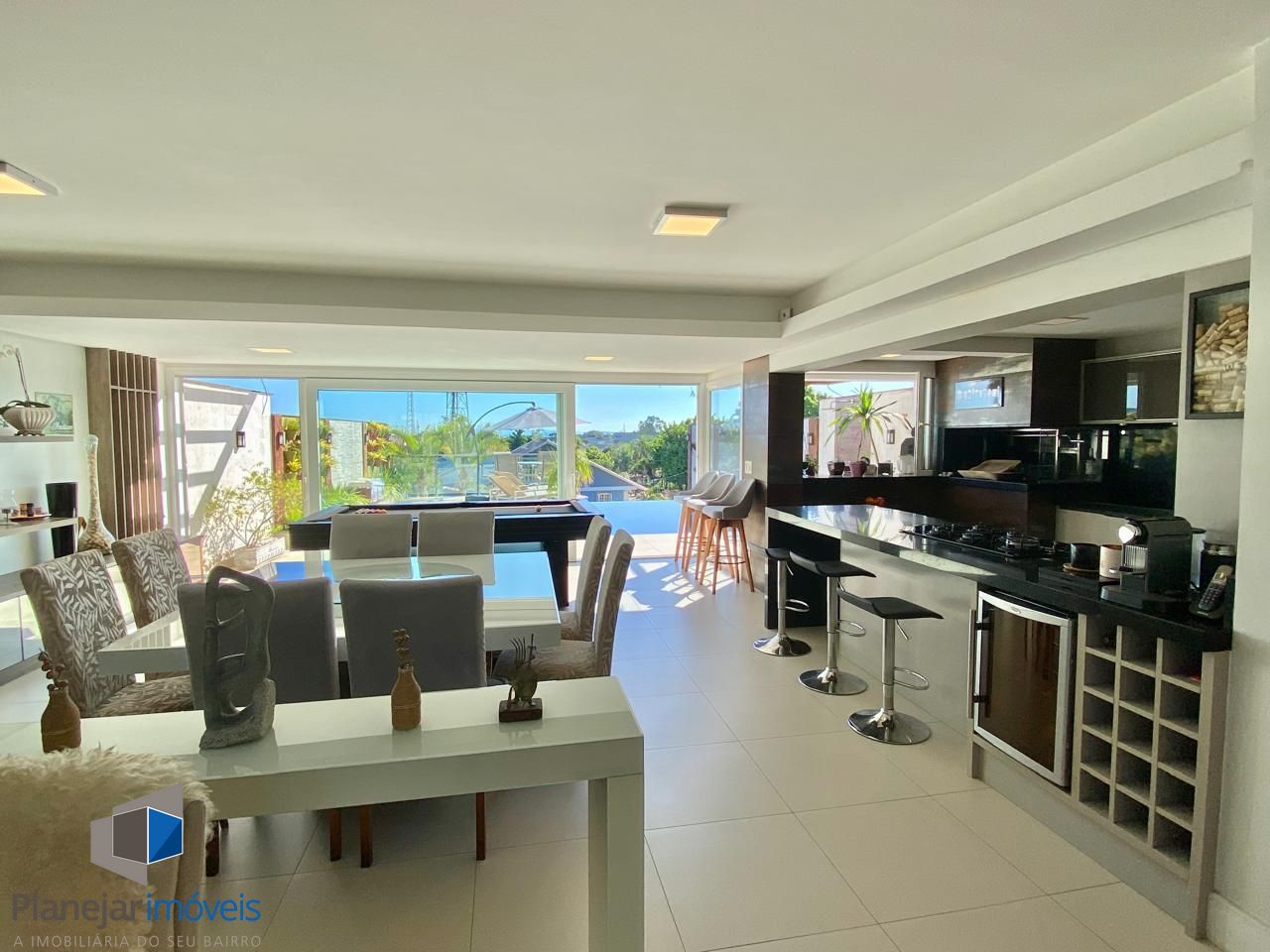 -Térreo (sala estar/jantar/cozinha gourmet integrada, pátio e piscina com borda infinita, escritório/4° dormitório, banheiro)