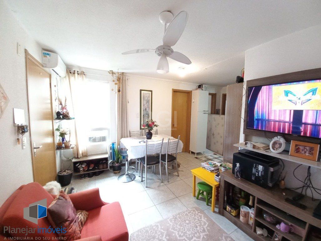 Ótimo apartamento na zona leste de Porto Alegre localizado em frente ao Hipermercado Carrefour, semi mobiliado, com 2 dormitórios, living 2 ambientes, área de serviço, vaga rotativa. Condomínio com portaria 24hrs, quadra de esportes, salão de festas. Estuda propostas. Aceita financiamento bancário. Agende já sua visita e surpreenda-se!