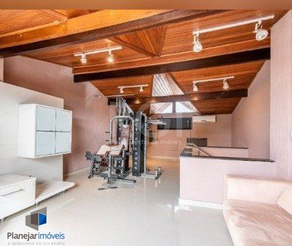 Terceiro pavimento com espaçoso sótão, estar íntimo e equipamentos de ginástica.