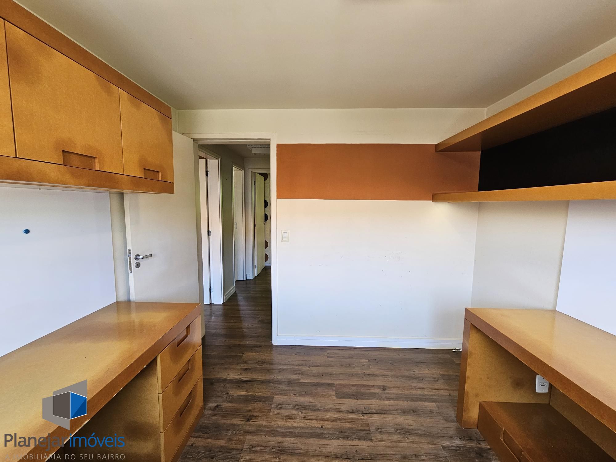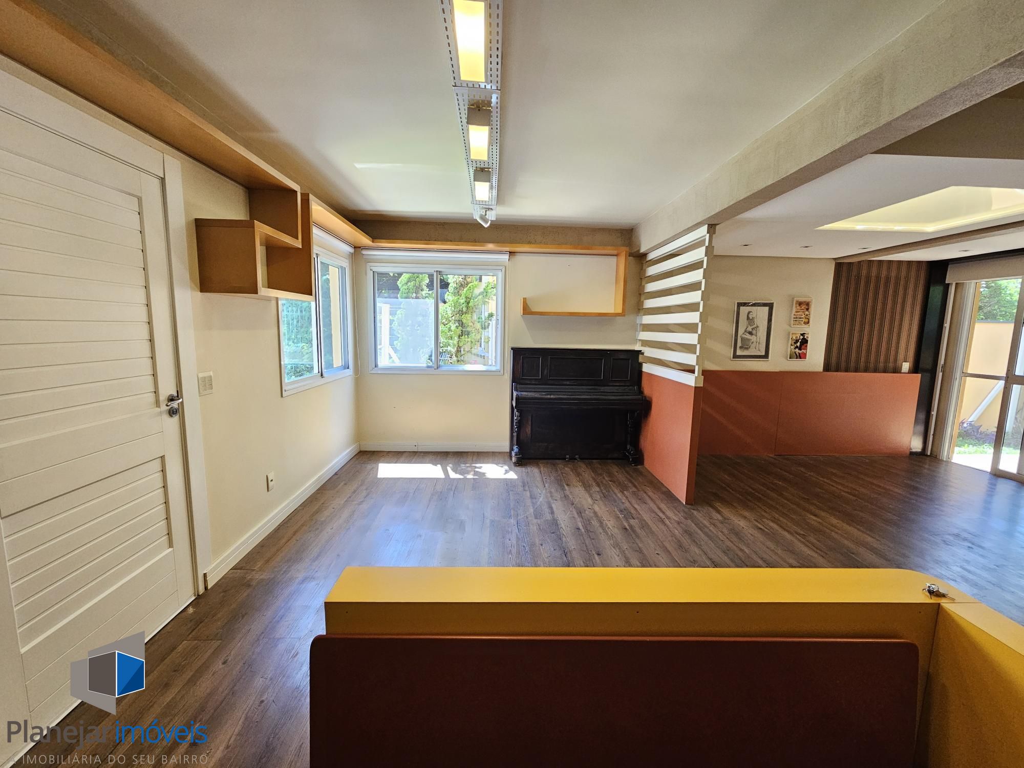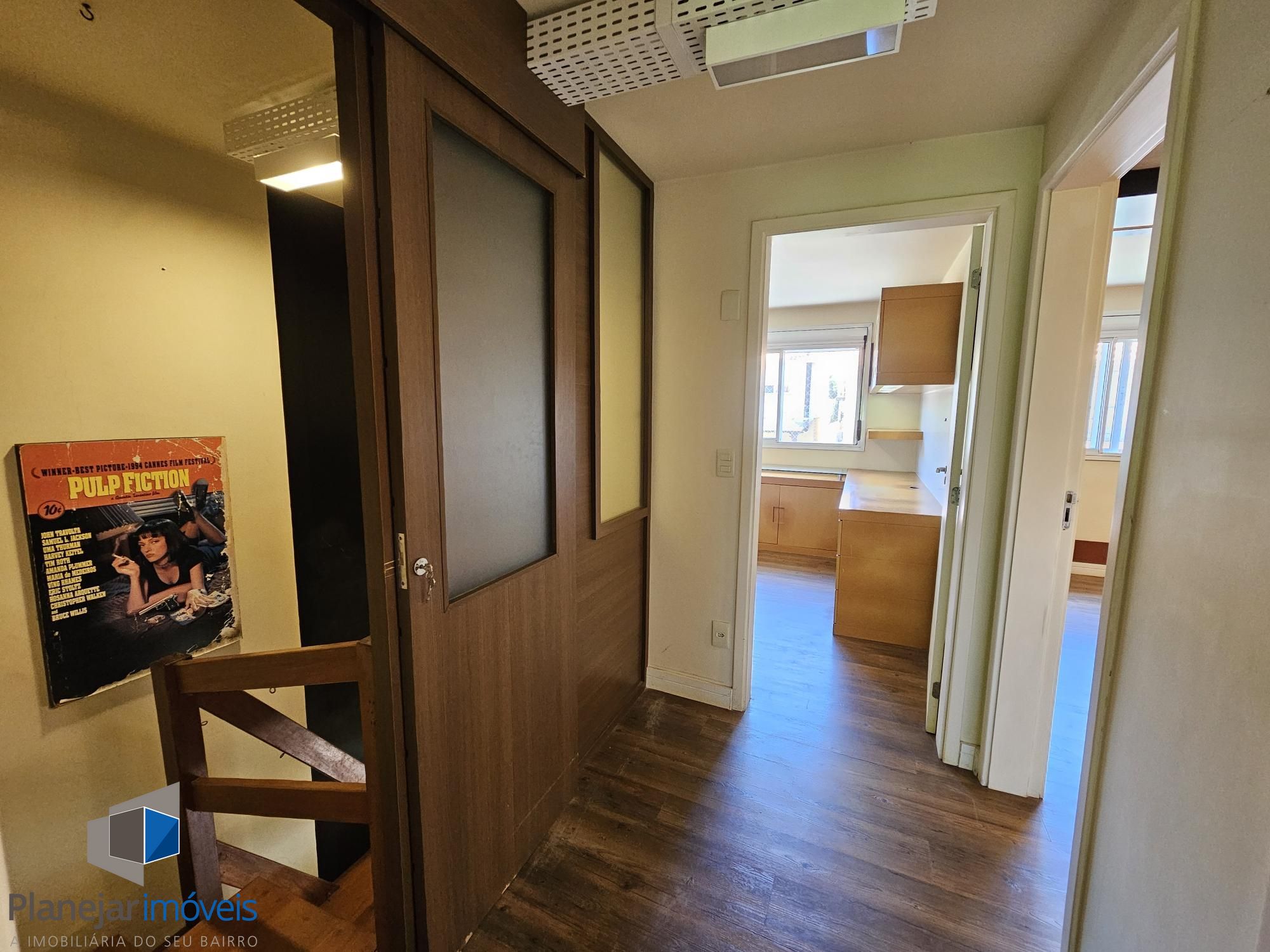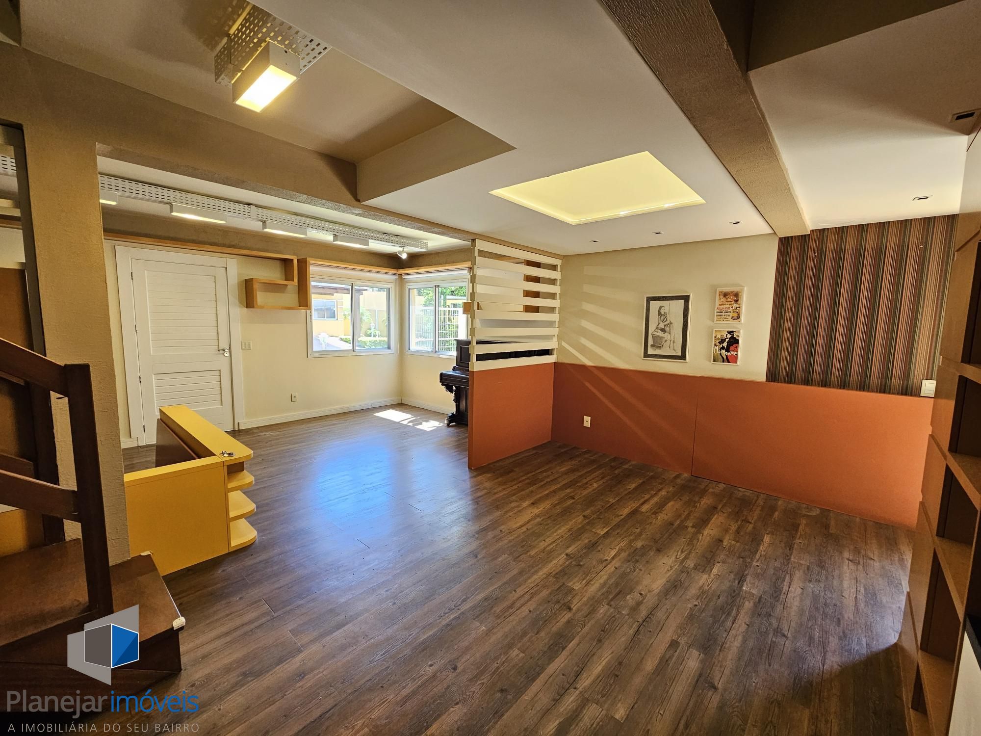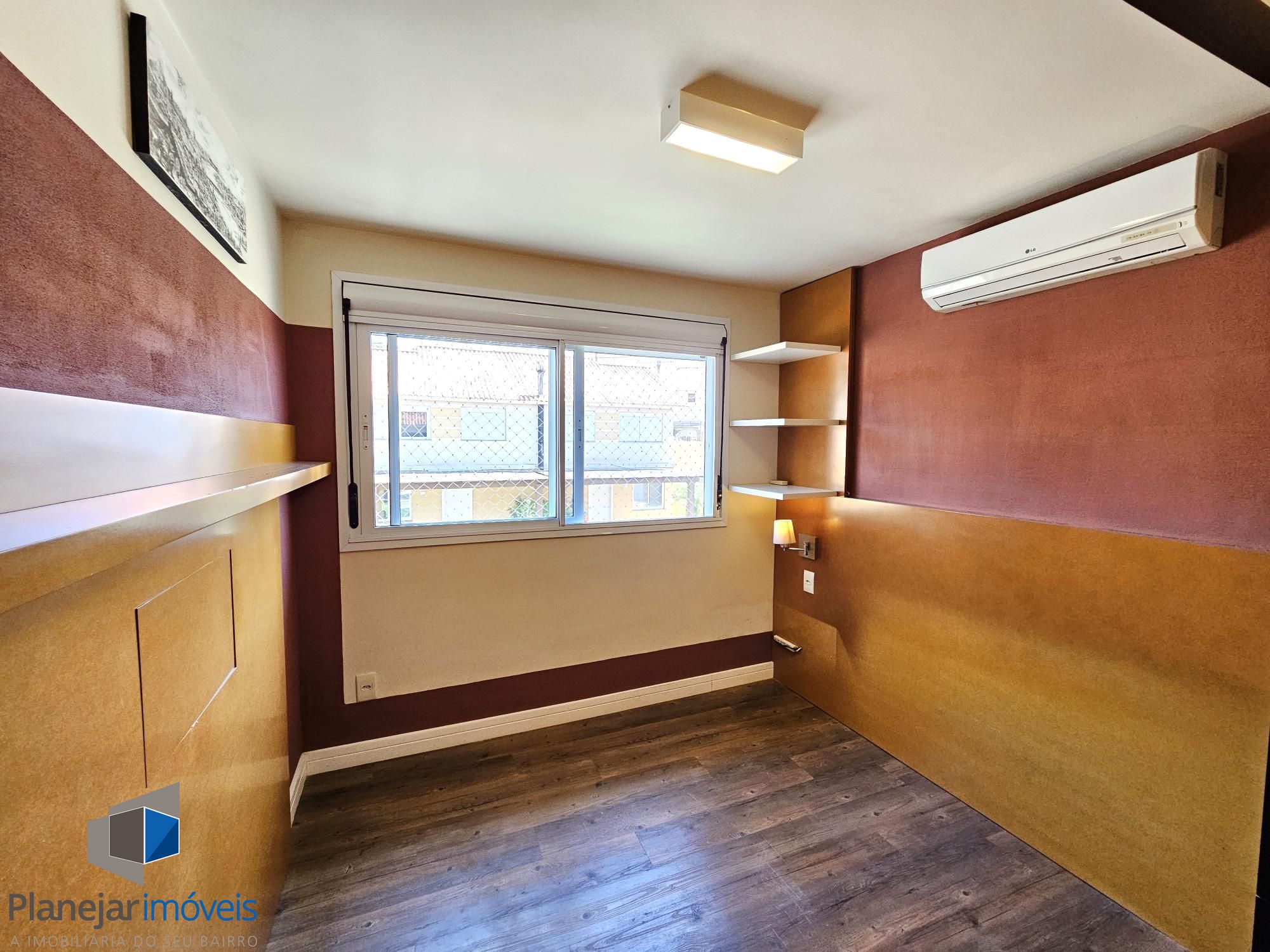 Desocupada e semimobiliada, casa com 3 dormitórios, sendo uma suíte, vaga para dois carros. Térreo tem living para 3 ambientes com lareira, cozinha com armários, área de serviço independente, varanda para o quintal de fundos. Na parte superior ficam os dormitórios, todos com armários sob medida.