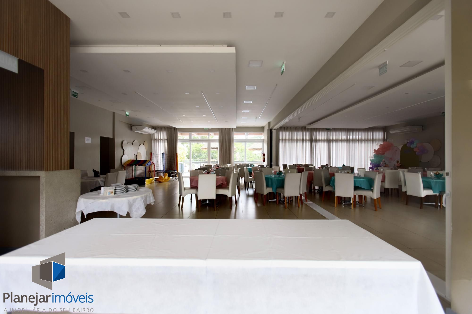 Ao fundo salão de festas privativo e climatizado com SPLIT, churrasqueira e 01 banheiro completo.