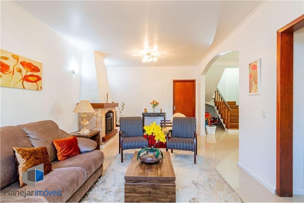 Esta espaçosa casa de dois pavimentos, com 293m² privativos, semimobiliada é perfeita para quem valoriza conforto, espaço e boa localização. No térreo, o living com lareira integra-se ao espaço gourmet com churrasqueira, criando um ambiente acolhedor para receber. A cozinha é ampla, conta com despensa e se conecta com um escritório funcional e lavabo. No andar superior, estão os quatro dormitórios, incluindo uma suíte com hidromassagem. A casa ainda oferece amplo pátio, com espaço pra piscina, jardim.