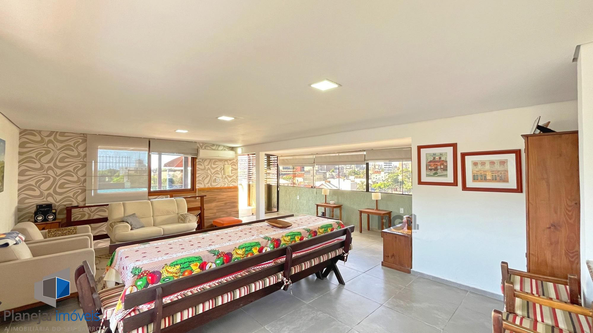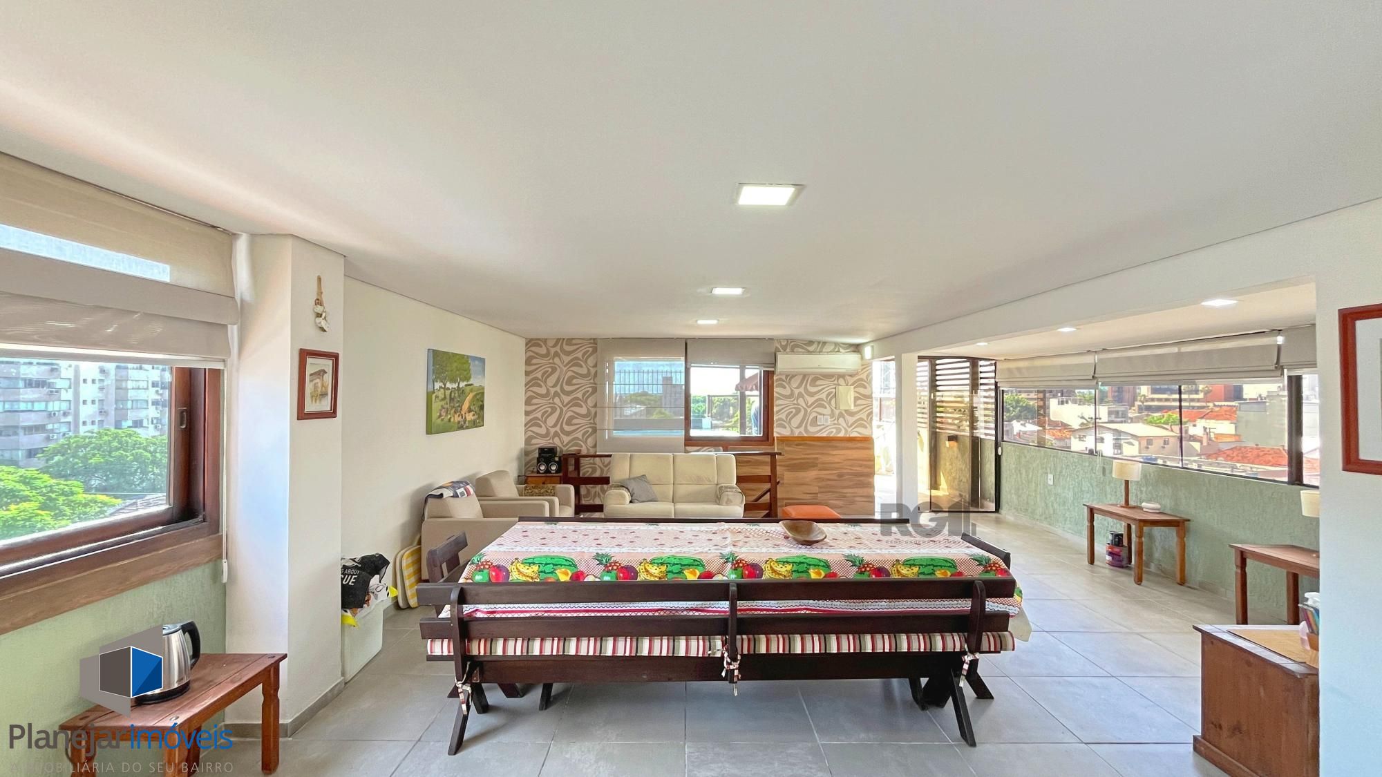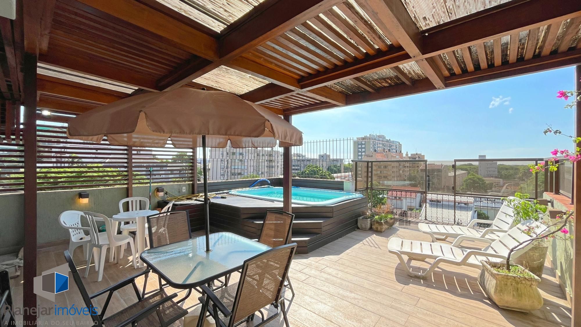 Excelente cobertura no bairro Menino Deus, de 3 dormitórios sendo 1 suíte com sacada e banheiro com ventilação natural, todos dormitórios com ar condicionado, sala de jantar e estar, cozinha com móveis planejados, área de serviço, 1 banheiro social com ventilação natural, no piso superior tem piscina , deck, um lindo espaço gourmet com churrasqueira e 2 Splits, tudo isso distribuídos em 220m² de área privativa. 2 vagas de garagem escrituradas e cobertas, prédio com porteiro eletrônico e elevador. Agende sua visita com um de nossos corretores!