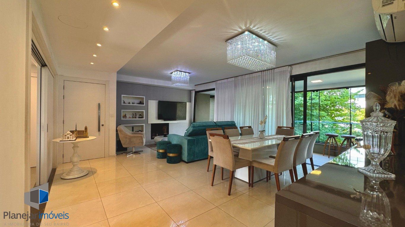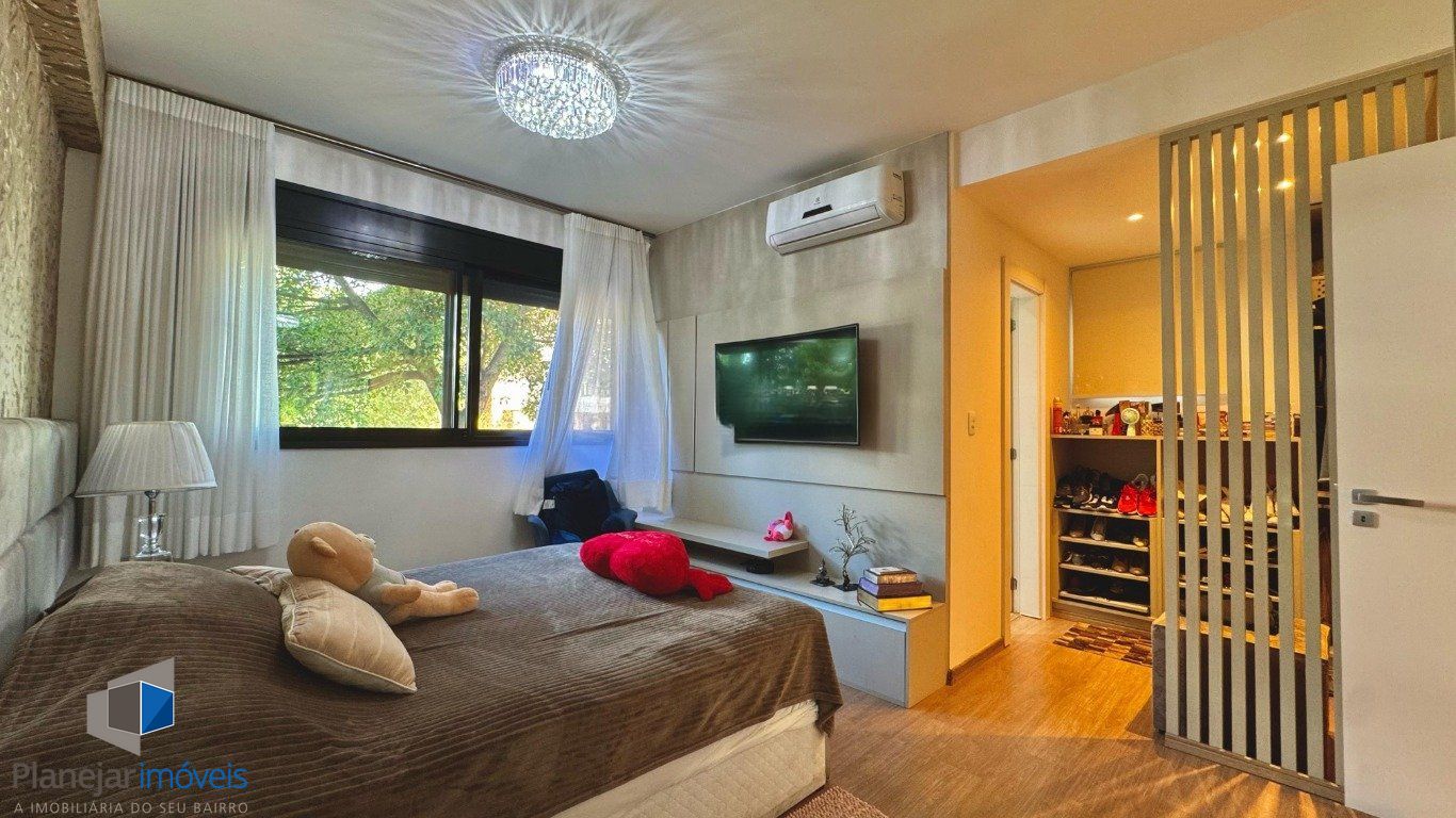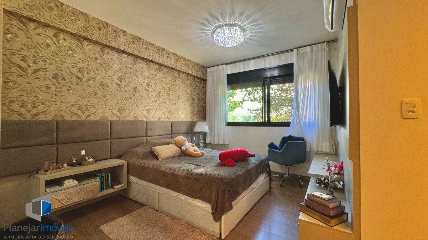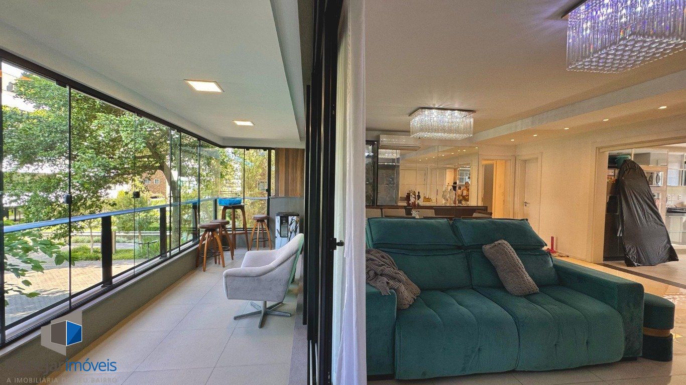 Apartamento semi mobiliado com 146 metros privativos no bairro Pedra Redonda. Ampla sala dois ambientes, lareira, varanda fechada com churrasqueira. Lavabo. Cozinha gourmet com móveis planejados. Área de serviço separada com banheiro auxiliar. 3 dormitórios com privacidade, sendo 3 suítes e duas delas com sacada. 3 vagas de garagem separadas. Fechadura eletrônica e sol da manhã-tarde. Prédio com excelente padrão construtivo Maiojama.