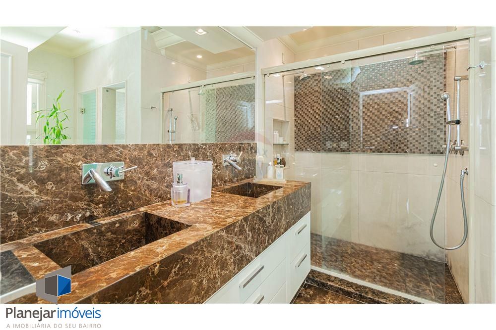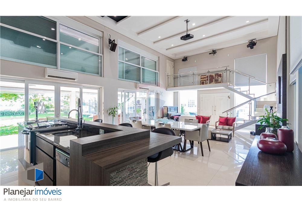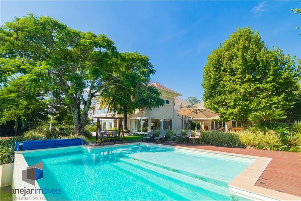 Porto Nobre vende Casa luxuosa estilo clássico Americano com salão de festas privativo anexo, com área total de 941 m² em terreno de esquina com 2.000 m² no Condomínio Terra Ville II, situado na Zona Sul de Porto Alegre.Com piso em mármore, conta com 7 suítes, ampla sala de estar e jantar integrados, Home Theater, 2 escritórios, adega e 3 amplas sacadas com linda vista para o condomínio. Banheiros com piso aquecido. Ar condicionado em todos os aposentos.Piscina externa aquecida com borda infinita e uma bonita vista para o campo de golfe.Salão de festas privativo com 2 suítes adicionais. Churrasqueira com espeto rotativo e grelha ajustável. Bancada com pia, fogão e chopeira. Telão com 3 m x 2 m e sistema de iluminação e som para festas. Paredes e vidros duplos para o necessário isolamento acústico, tendo em vista a comodidade dos moradores e vizinhos. Duas amplas varandas, uma no térreo e outra no piso superior.Garagem para 6 carros.E um primoroso e bem arquitetado paisagismo composto por Canariensis, Oliveiras, Cicas, Plátano, Flamboyant e frondosa Figueira.Imóvel em Parceria